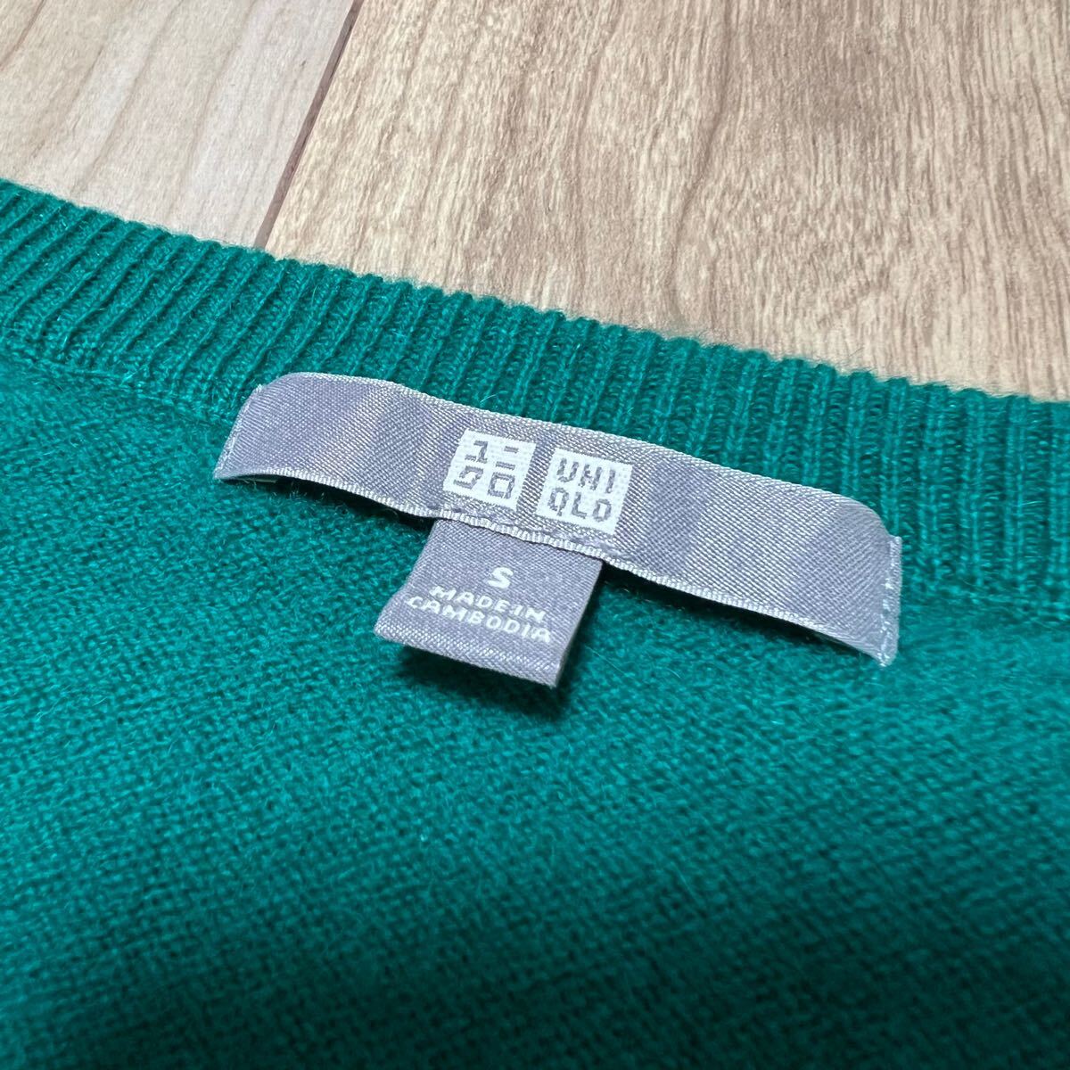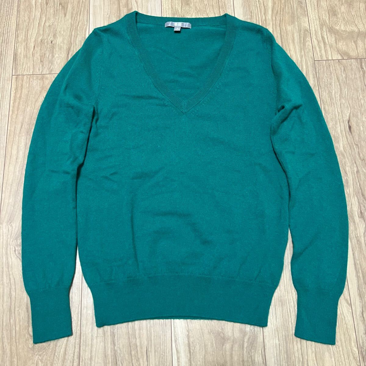 ★送料360円★カシミア100% 高級 UNIQLO ユニクロ 長袖 カシミヤ ニット セーター 緑 グリーン レディース Vネック サイズS 美品 R-6874