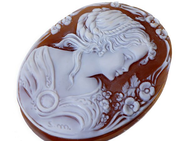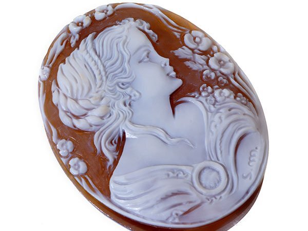 作家刻印有り!妖艶な貴婦人と花の彫刻が魅力的な高級シェルカメオルースを特別大放出致します!