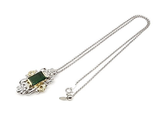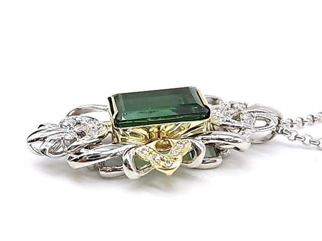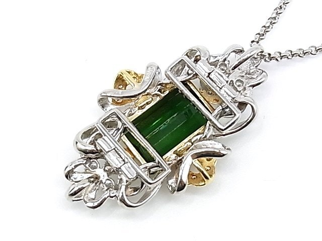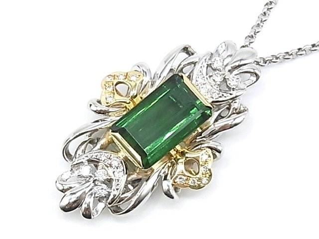 g20148 Pt850/900/K18YG グリーントルマリン6.29ct D0.33ct ネックレス USED 美品 22.5g 50cm アジャスター付新品チェーン