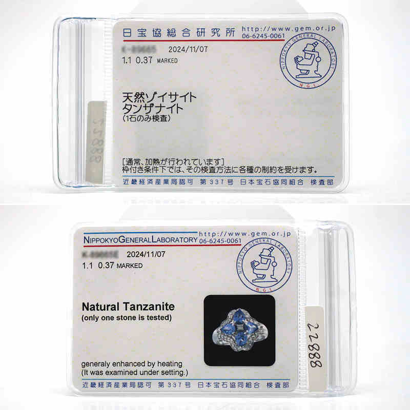 ソーティング記載 | 天然ゾイサイト タンザナイト (1石のみ検査) 通常、加熱が行われています |