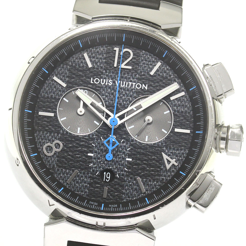ルイ・ヴィトン LOUIS VUITTON QA094 タンブール ダミエ グラフィット クロノグラフ クォーツ メンズ 良品 _848611