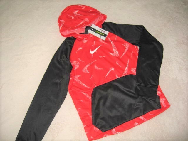 150 新品 ナイキ  サーマ 薄地の中起毛 パーカー 軽量 NIKE 赤黒
