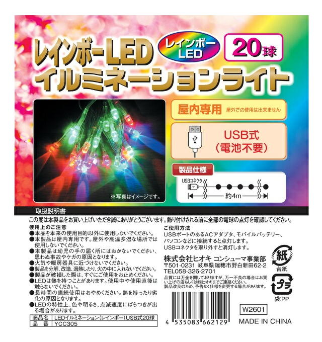 まとめ買いOK  新品LEDイルミネーション(USB電源)20球レインボー 4m