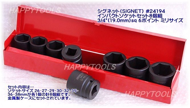 インパクトソケットセット 3/4"(19.0mm)sq. 6ポイント ミリサイズ |