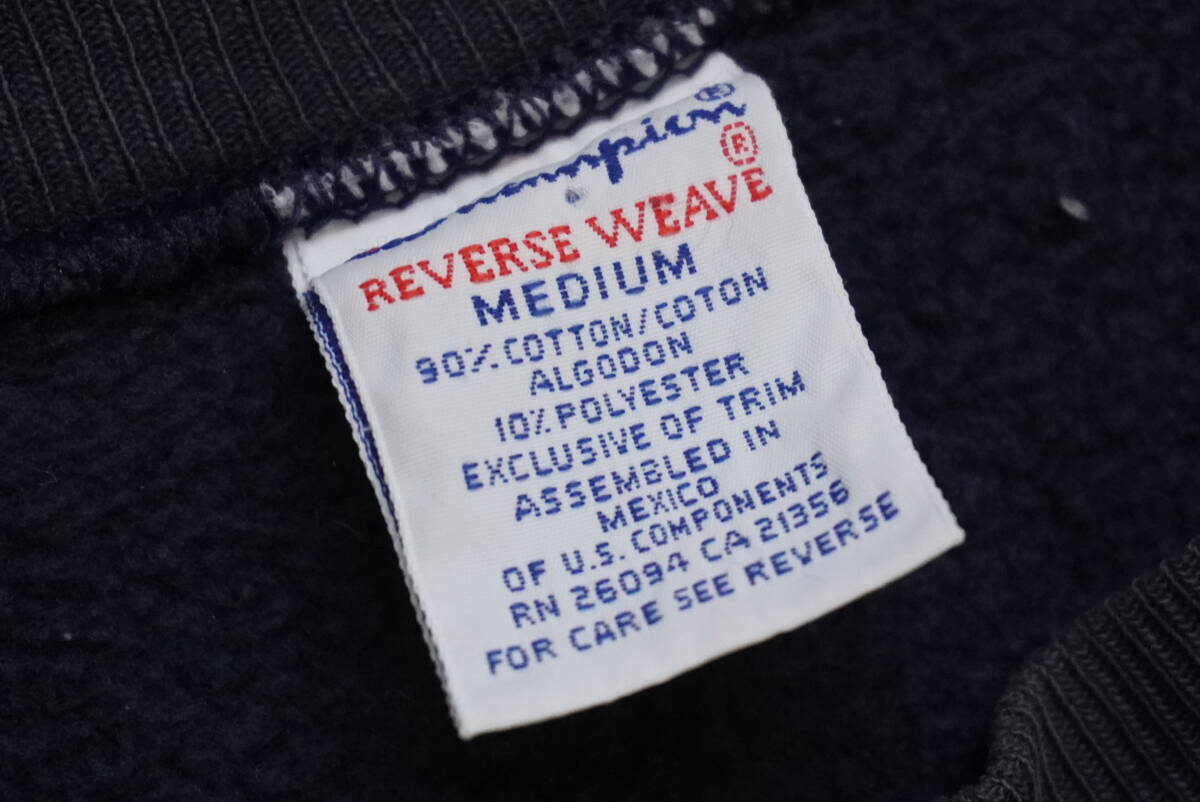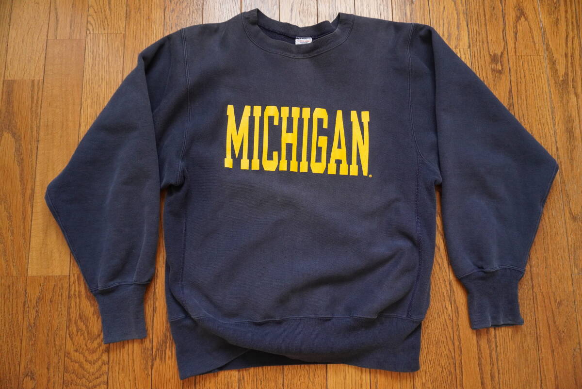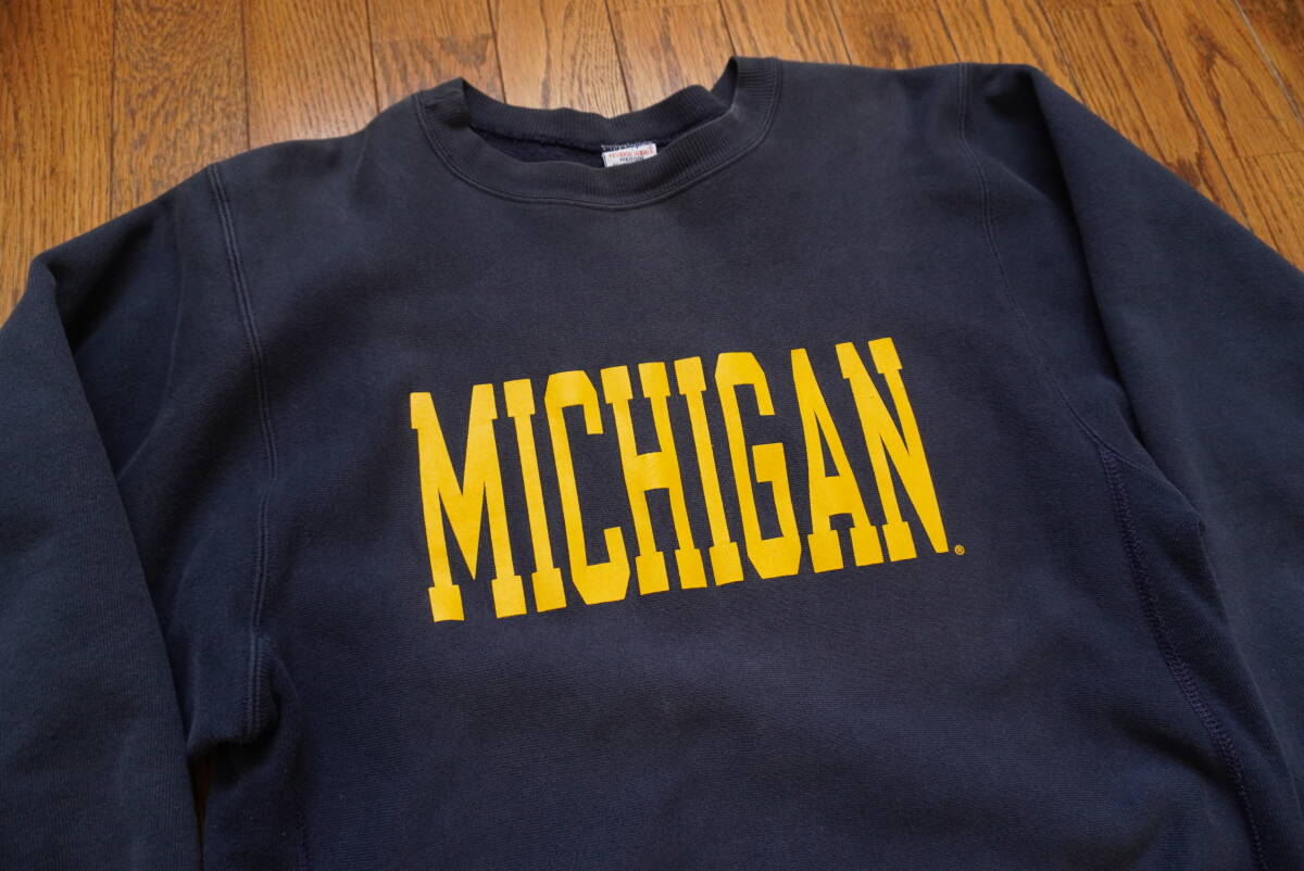 90年代前半★刺繍タグ チャンピオン Champion スウェット M 茄子紺 ネイビー リバースウィーブ MICHIGAN ミシガン★目無し