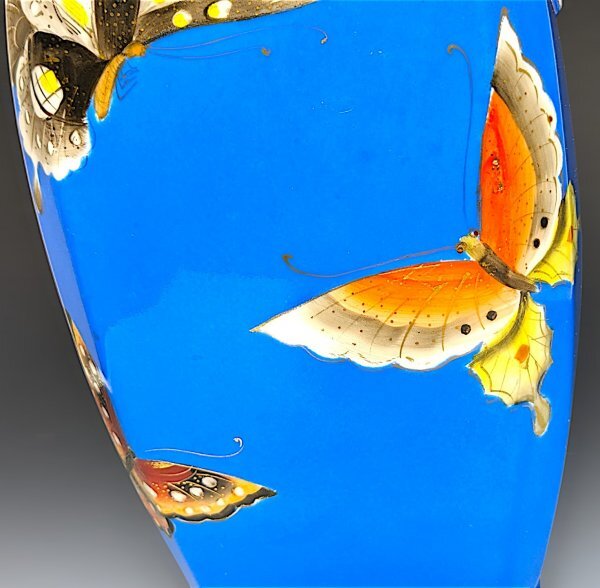 | ☆★☆★☆★☆★☆★☆★☆★☆★☆★☆★☆★☆★☆★☆★☆★☆★☆★☆★☆★☆★ ご覧いただきありがとうございます! 私は自身でアンティーク商品を集めつつ、買い替えも兼ねてヤフオクへ出品しております。 商品を購入する際、決め手は心が動かされるかどうかです。 心が動かされる商品、具体的には『華やか』『迫力満点』『美しい』などです。 また、商品鑑賞時以外は傷がつかないよう個別にプチプチに包んだ上で保管しております。 万が一、商品に瑕疵があった際は返品を受け付けますので遠慮なく申し出ください。 今後とも商品を出品して参りますのでフォローもお願いします。 また、現在出品中の商品を合わせてご確認頂けたら幸いです。 現在の出品ページは下記URLから確認頂けます。 https://auctions.yahoo.co.jp/seller/enjo1313/ それでは、どうぞごゆっくりご覧になってください。 ☆★☆★☆★☆★☆★☆★☆★☆★☆★☆★☆★☆★☆★☆★☆★☆★☆★☆★☆★☆★ 【商品名】 1908年 オールドノリタケ 金彩 蝶図紋 花瓶 壺 【オールドノリタケについて】 オールドノリタケとは日本陶器合名会社(現・ノリタケカンパニーリミテド)が明治期から戦前までに欧米に輸出した陶磁器のことである。 花瓶や置物などの装飾品と洋食器などのテーブルウェア主体で、特に芸術的な絵付けや繊細な細工などで知られ今でも収集家は多い。 「オールドノリタケ」という呼称は1990年代に婦人雑誌やアンティーク誌などで使われるようになり、日本製のきらびやかな洋風陶器に人々も関心を集めるようになった。オールドノリタケの製品は主にアメリカ向けに輸出され、国内で販売されることはなかったため、日本では目に触れることはほとんど無かった。アメリカでは1970年代に専門誌が発行される等、骨董愛好家のあいだでブームが高まった。 【商品説明】 オールドノリタケの花瓶となります。 器体全体を鮮やかな蒼地で覆っており、職人さんの手書きによる見事な蝶絵が印象的な商品となります。 非常にきれいな一品となっていますので観賞やコレクション用に是非いかがでしょうか? 【コンディション】 経年による金の擦れなどは多少ありますがひびやかけ及び補修の跡なく、年代を考えれば良好のコンディションです。写真の白い箇所は塗料の剥がれではなく、ライトの反射となります。 高さ24cm×幅11.5cm 【発送方法】 ゆうパック(島根県より発送) 【その他】 商品に瑕疵があった場合は到着から返品処理を行いますので 到着から1週間以内にご連絡ください。 | |||