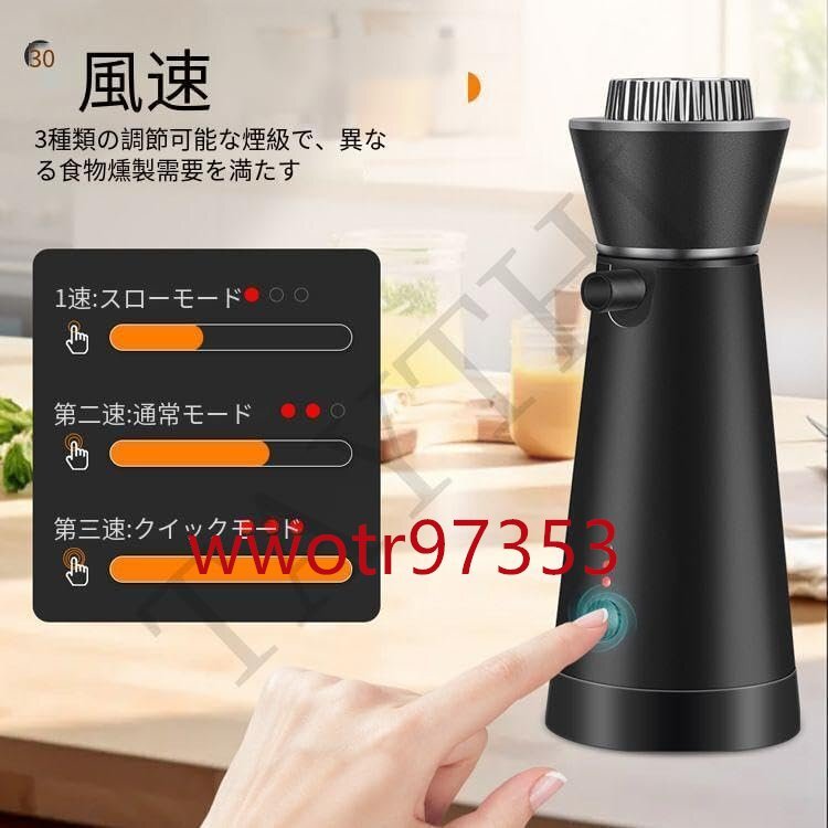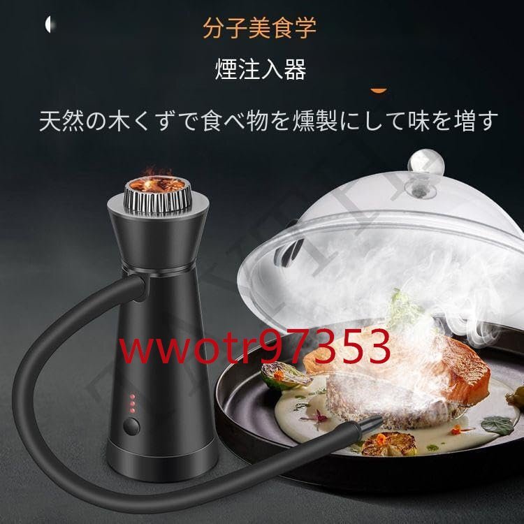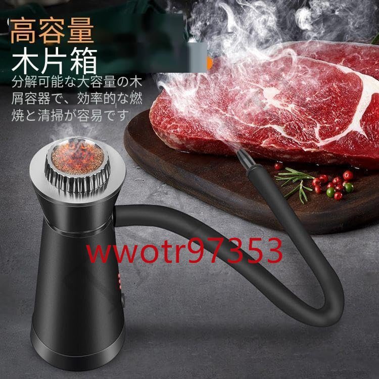 用途: さまざまな種類の木材チップ、お茶、ハーブ、スパイス、干し草、ドライフラワーを使用します。わずか 3 ~ 5 分で食べ物や飲み物に冷燻の風味と香りを加えます。