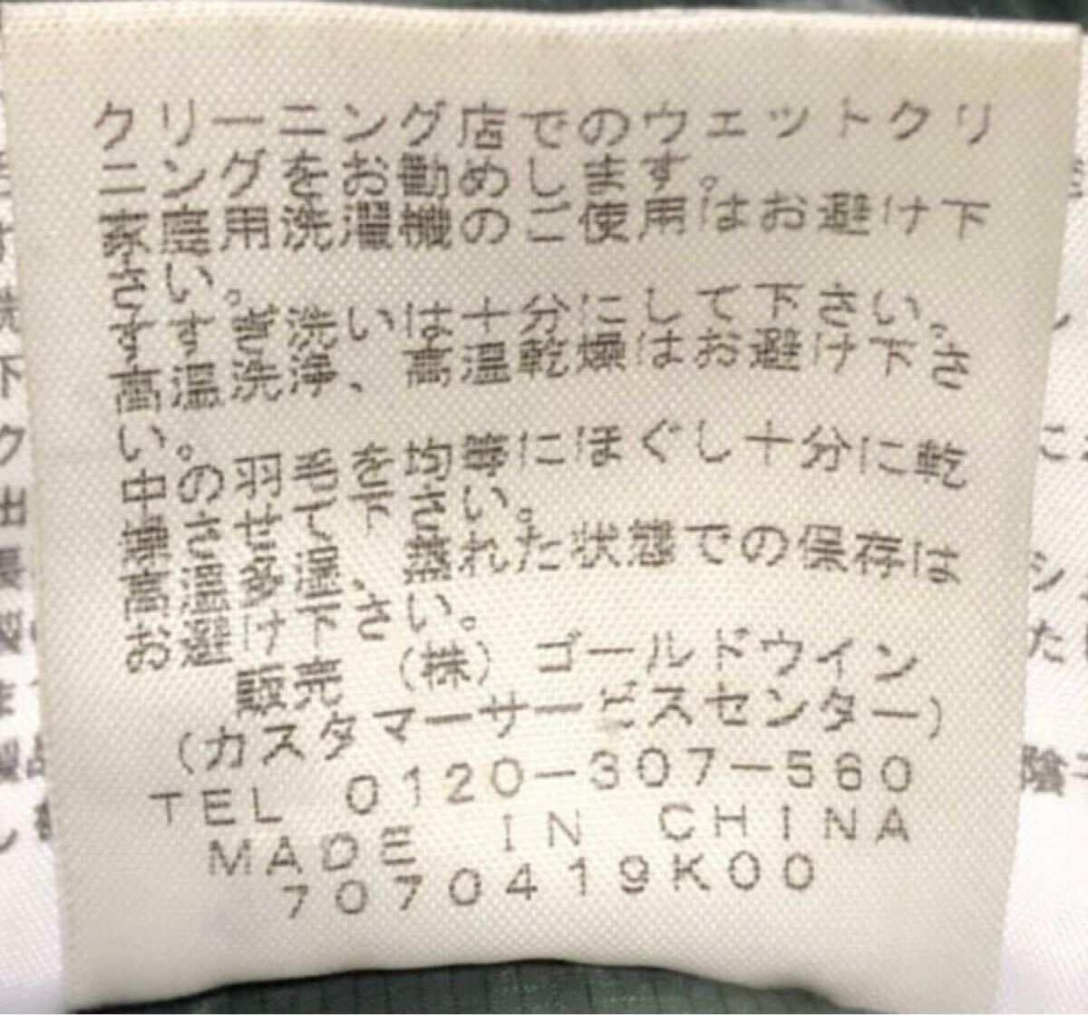 素材 【 本体-ナイロン100%/中わた-ダウン72%レーヨン20%その他の羽毛8%】