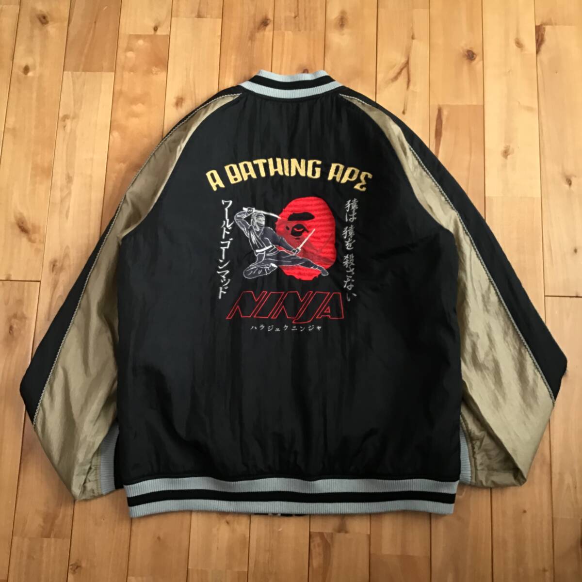 a bathing ape NINJA SOUVENIR JACKET ブラック × ゴールド Lサイズ です★