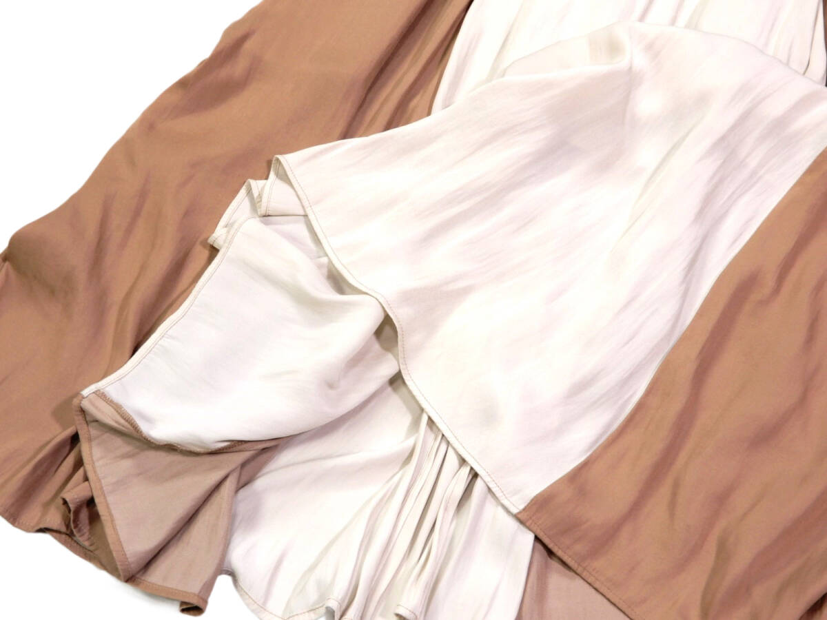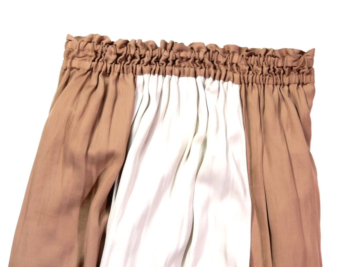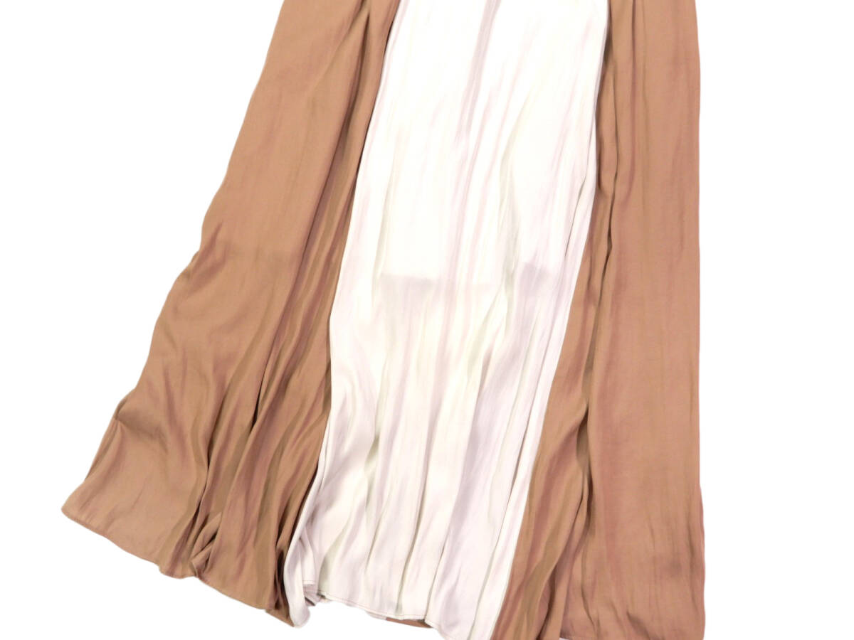 エメルリファインズ スカート サイズ表記:なし お色:ライトベージュ、ライトブラウン系 素材:表、裏地共にポリエステル100% 平置き実寸で w29×2(ゴムウエストで伸縮性あり)総丈97㎝位です。 手洗い可 |