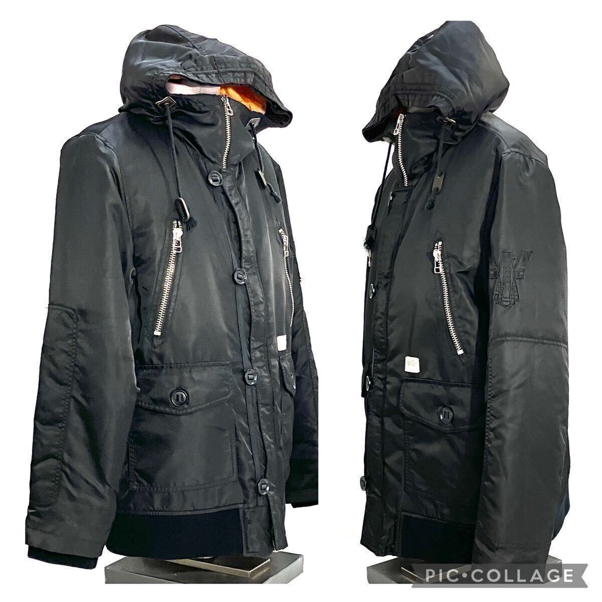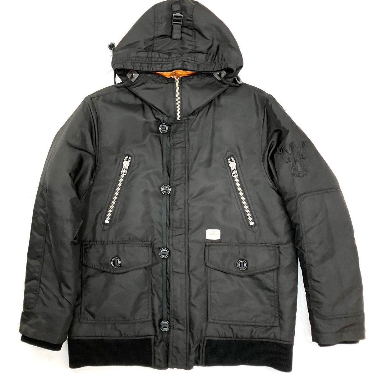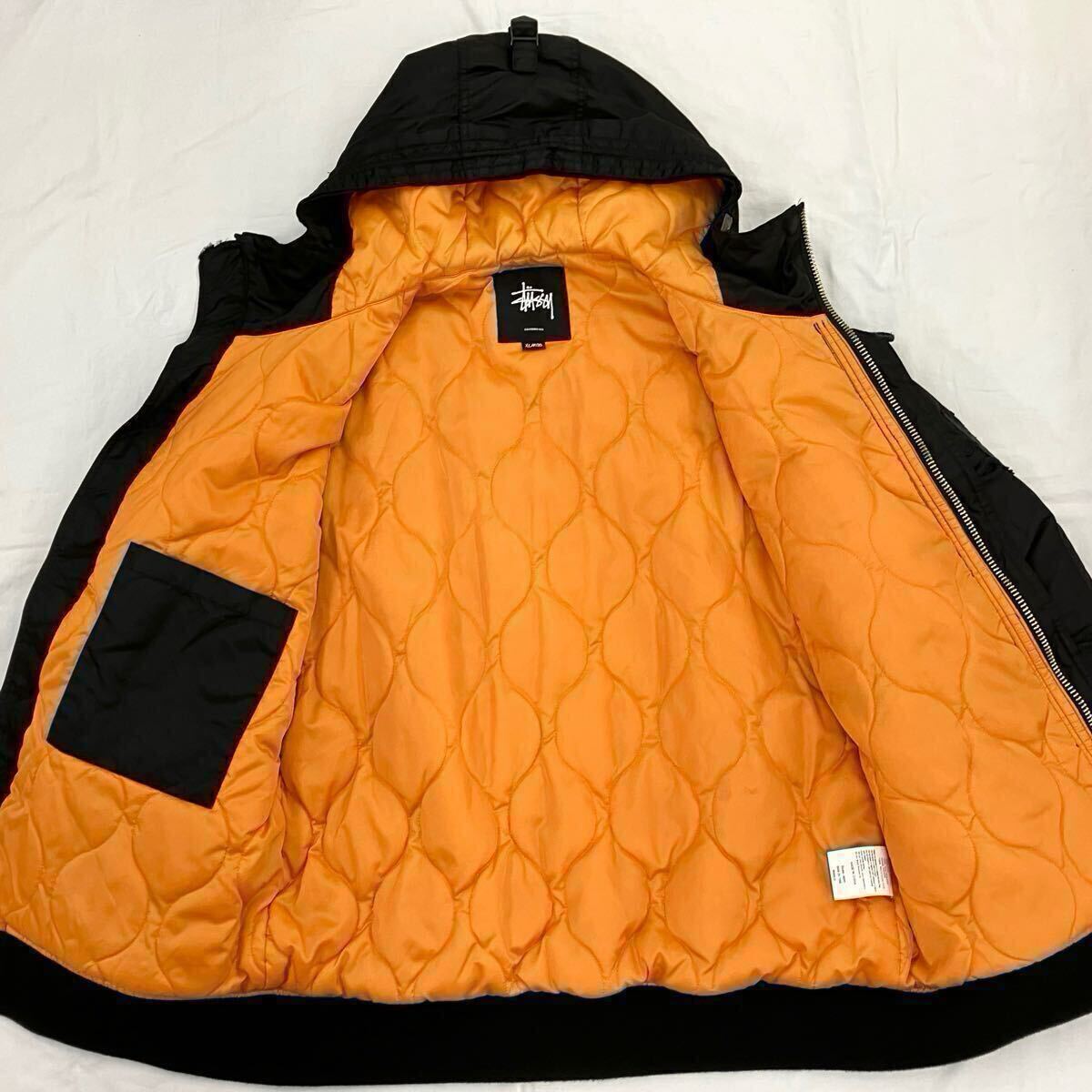 中古AB ステューシー STUSSY 中綿ブルゾン フーデッド ジャケット XL ブラック メンズ 148721