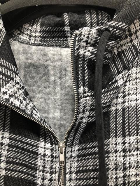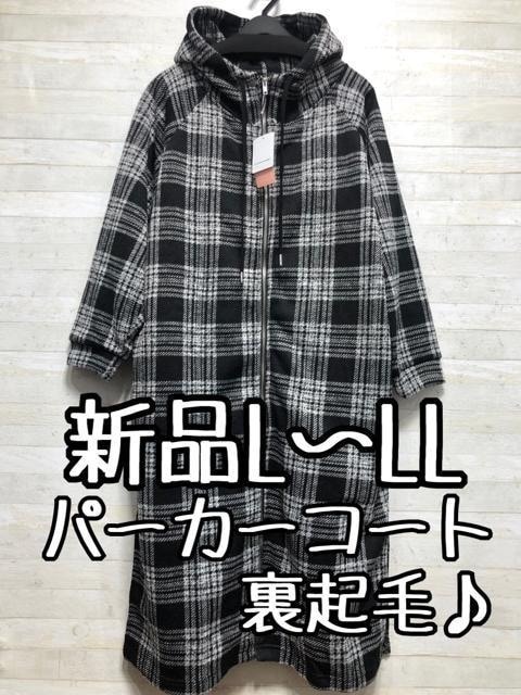 新品☆L~LL♪チェック柄♪裏起毛ロングパーカーコート♪お手軽アウター〇B487