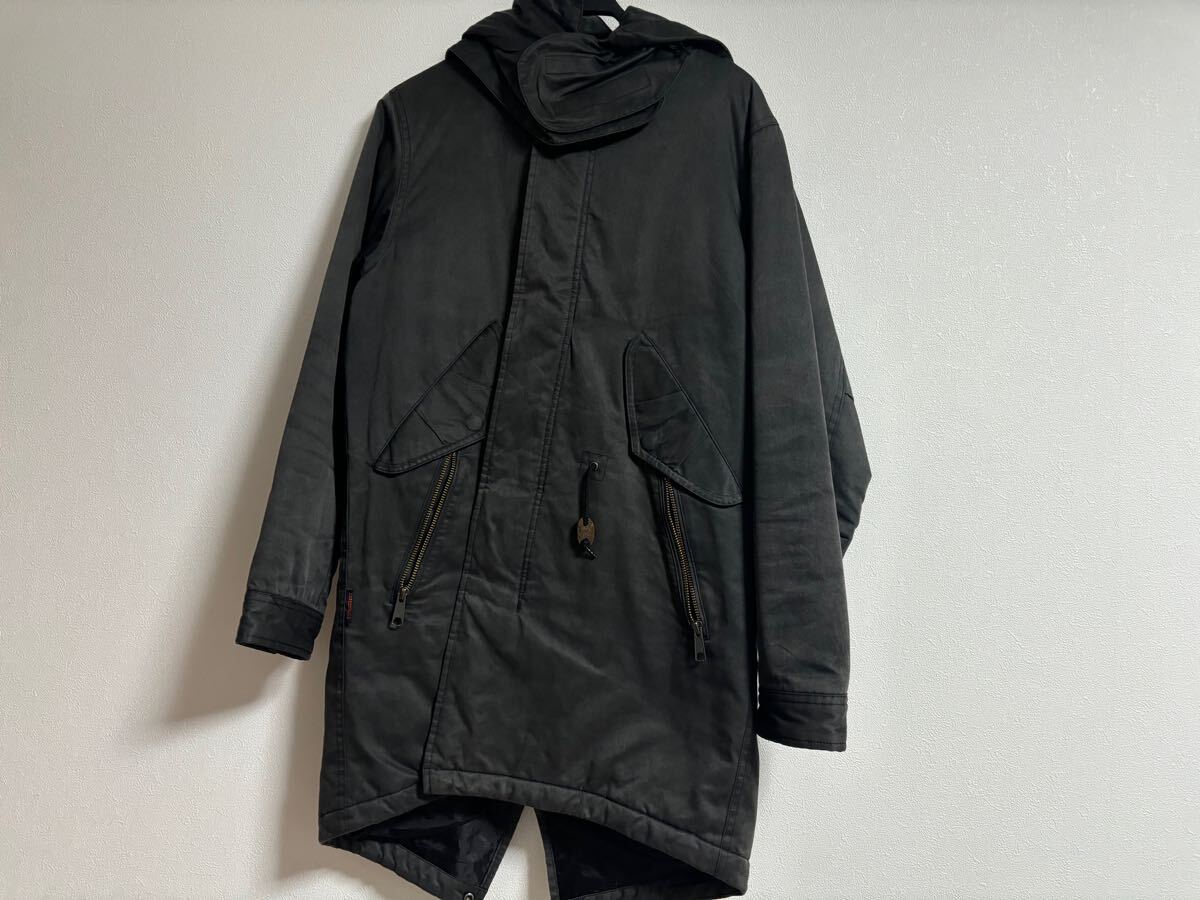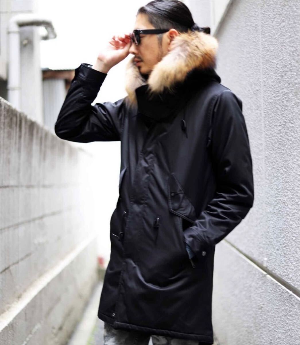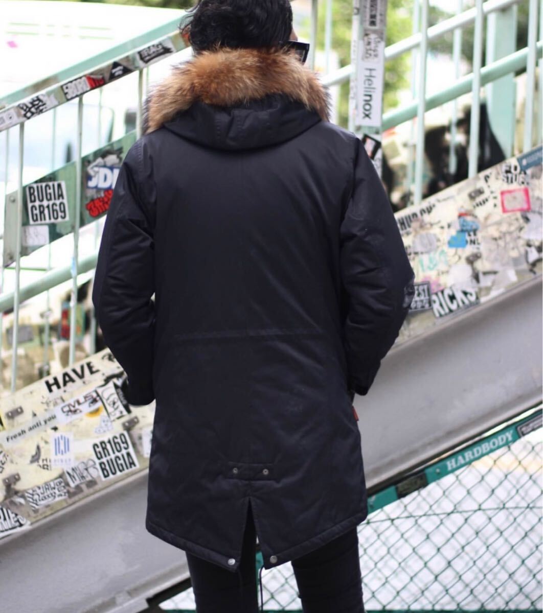 ネック部分にボリュームを持たせられる仕様にしており、見た目のカッコよさと防寒性を兼ね備えた機能性が魅力。ウエストを調整可能なドローコードが付いており、小さな輪を作って結んでストッパーにして頂ければ好みのシルエットが作成可能。ポケットやリベット、フィッシュテール等本格的なモッズコートのディティールを踏襲している。フードのリアルファー部分が外せる仕様になっている2WAYタイプ。コートの内側にあるライナーには、保温性の高い「THERMOLITE(サーモライト)中綿」を使用しているので、防寒性もバッチリです。