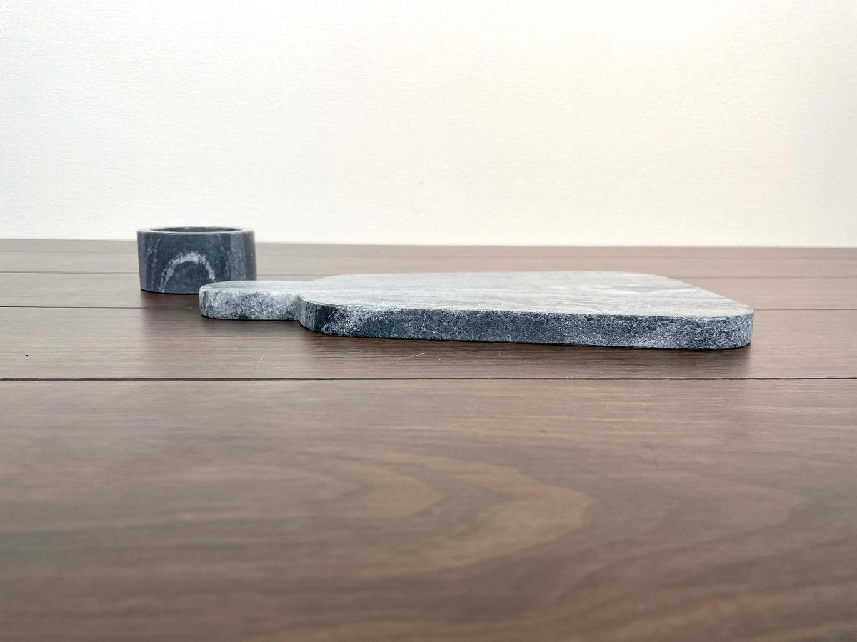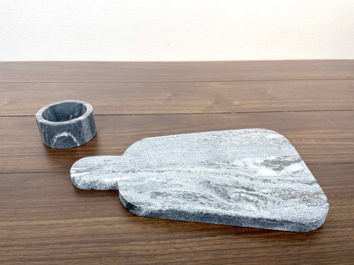 【福岡】石製 カッティングボード & 小物入れ◆まな板◆ボード:W295 H15 D180◆小物入:φ80 H42◆モデルR展示品◆BR6870_Ts