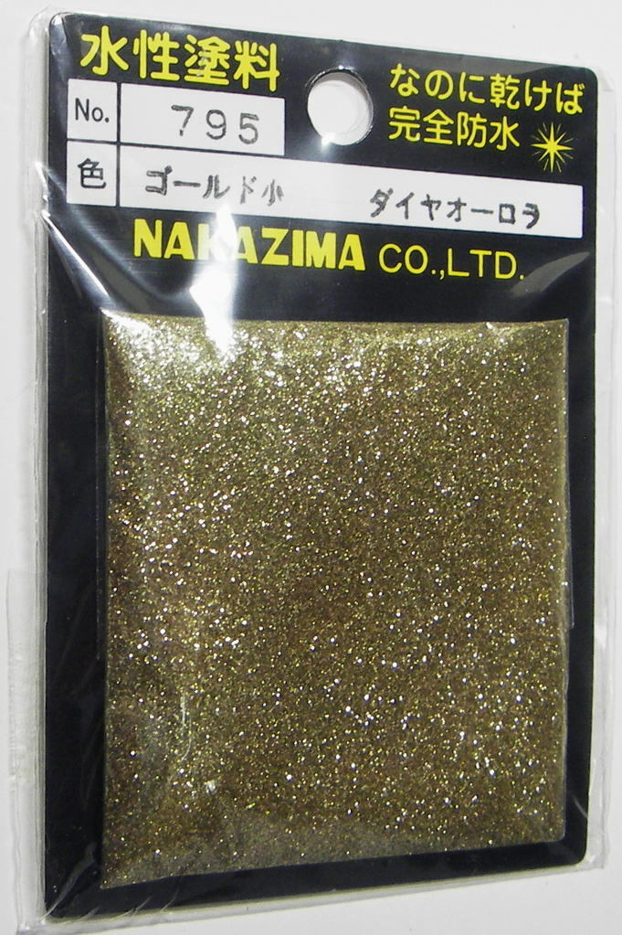 ナカジマ ラメフレーク ダイヤオーロラ ゴールド 小 新品です。 台紙サイズ:約7×9.8cm、重量:台紙込みで約14gです。 台紙に水性塗料とか記載されてますが、普通のラメフレークです。 長期保管の未使用新品です。