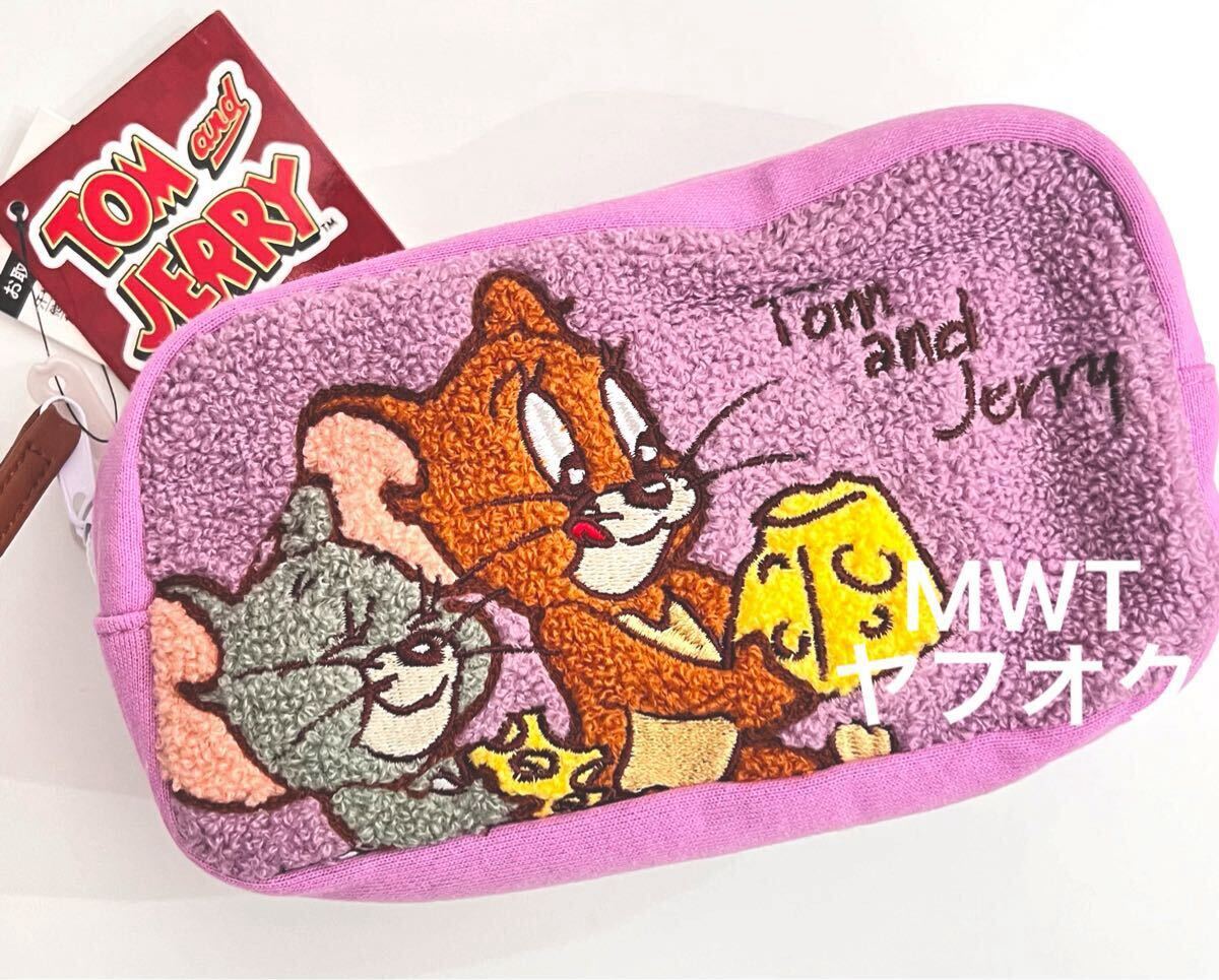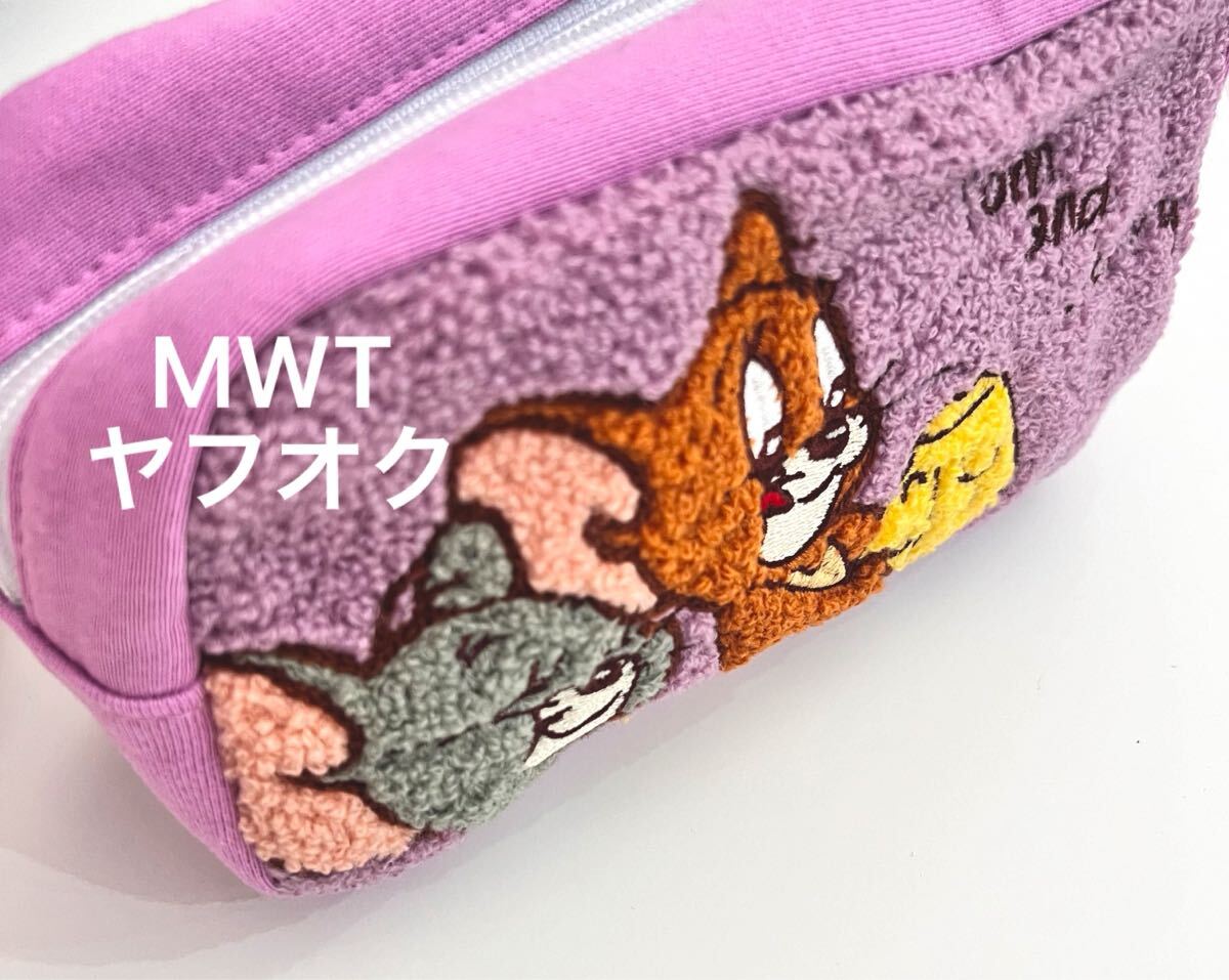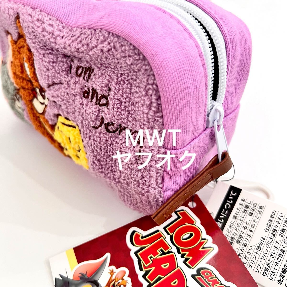 2202979 サガラスウェットポーチ パープル トムとジェリー レディース ファッション バッグ ポーチ 財布 刺繍 アニメ ねこ MWT