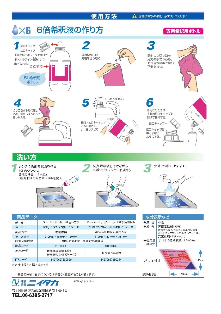 6倍に薄めて使っても、一斗缶タイプの原液と同程度の洗浄力があります。