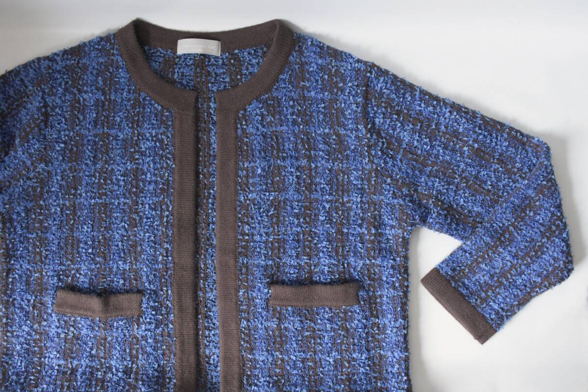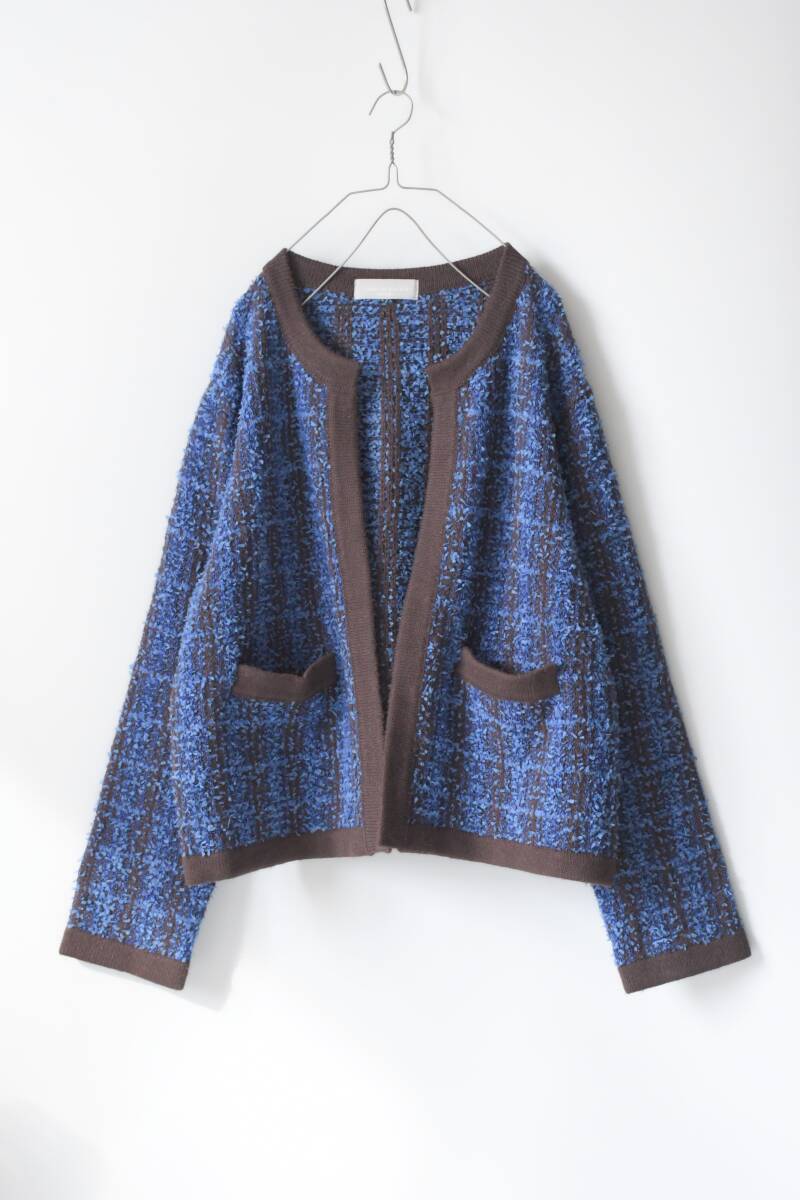 なめらかな質感でもっちりとした弾力のあるツイードニットを使用した、品の良い一着です。