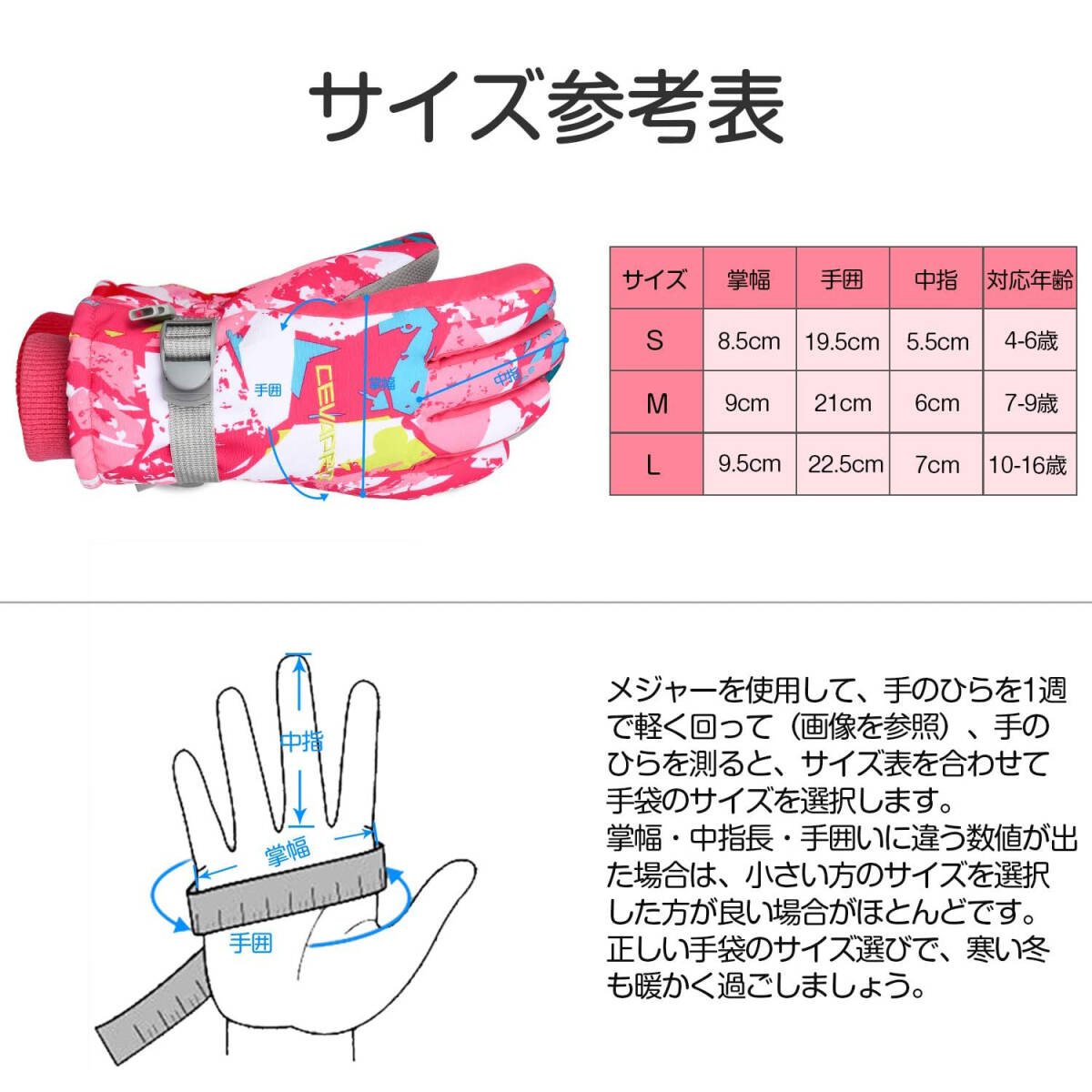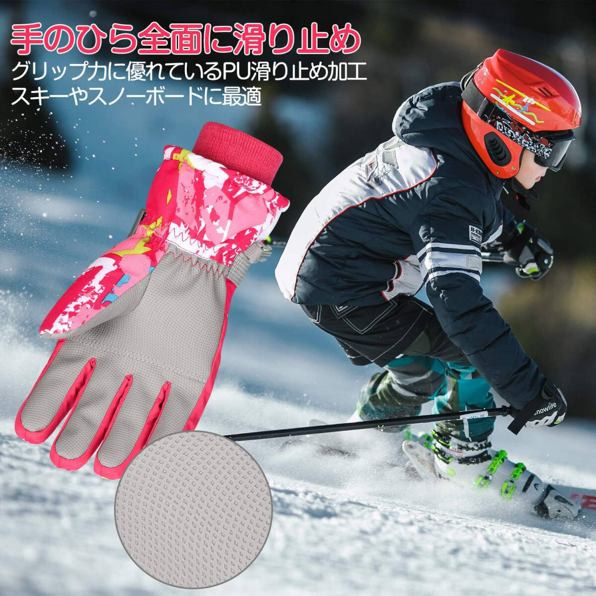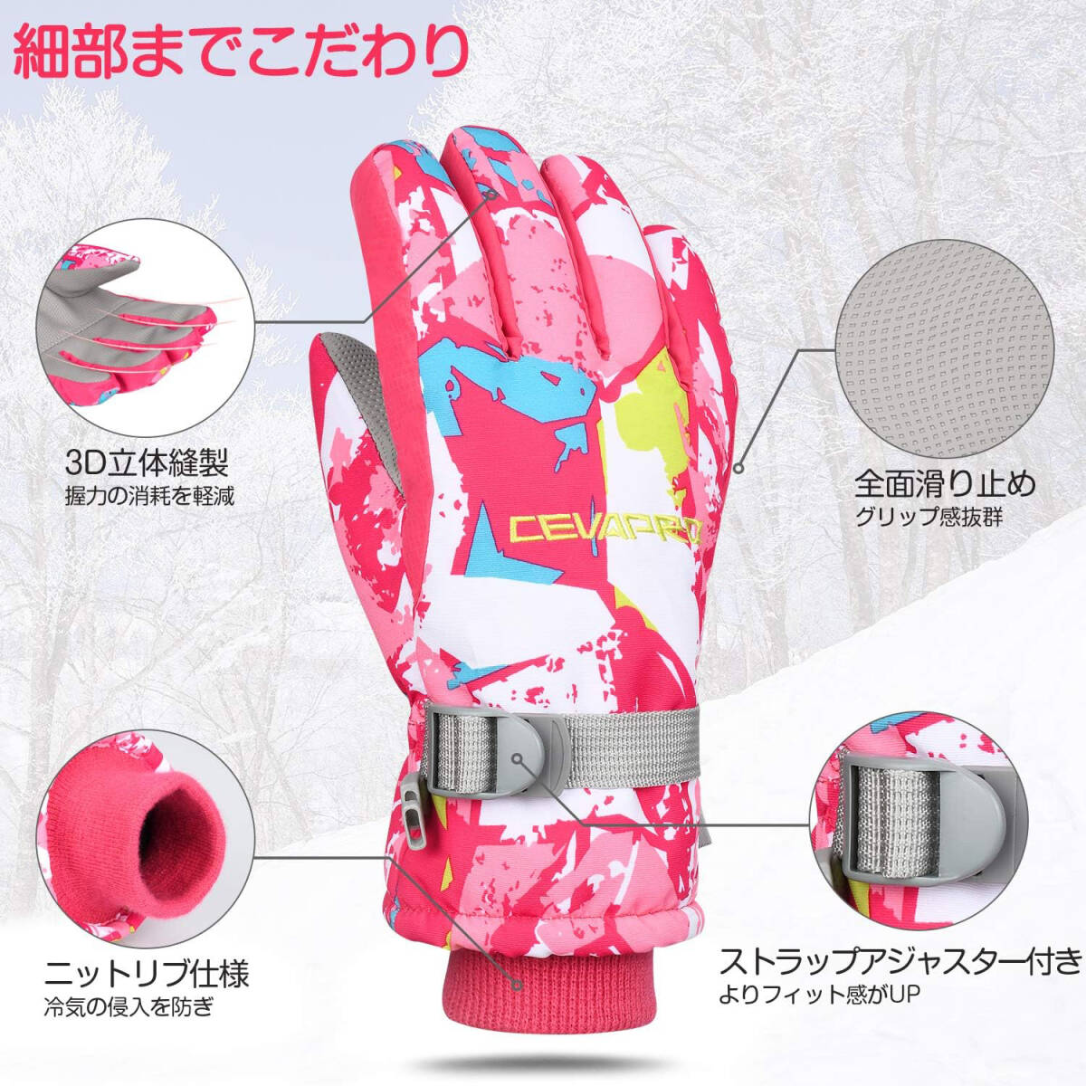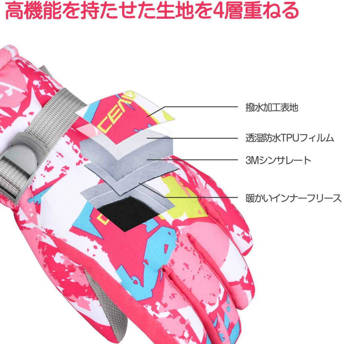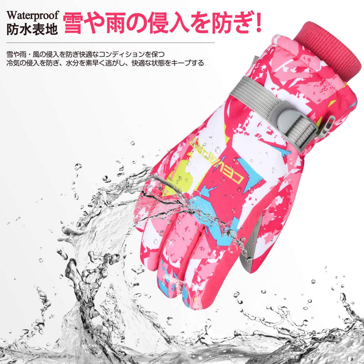 【保温性優良手袋】スノー手袋の内側には暖かいフリース、インナーは軽い中綿で、柔らかくて手に馴染みやすい、通気性にも保温性にも優れて、暖かいキッズスノーグローブです。また、袖部が長く、前腕部まで保護します。風や雪侵入を防ぎます。断熱性に優れ、非常に柔らかく、お子様の手を一日中暖かく保ちます