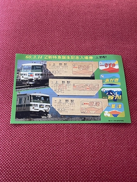 新特急誕生 記念入場券 上野駅 (管理番号82-28)