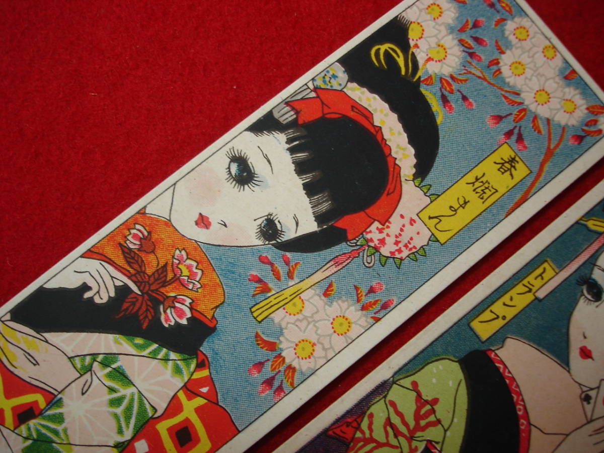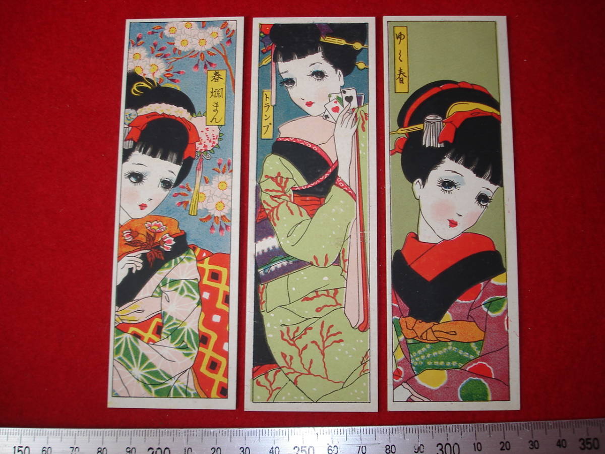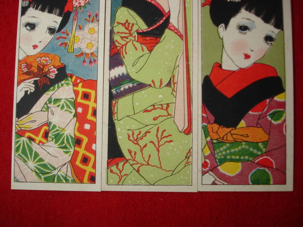 ★【逸品堂】★ 中原淳一 3枚組 版画 美人画 舞子 芸子 栞 しおり ブックマーク 昭和レトロアンティーク 珍品 文具 文房具 付箋 読書用道具