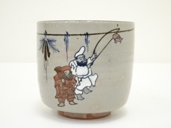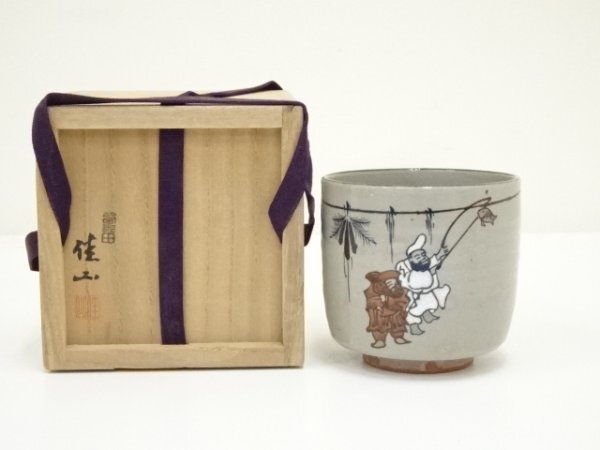 ys7250671; 粟田焼 岡田佳山造 二福神の絵茶碗(共箱)【道】