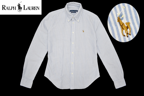 MU ※入札前に、自己紹介欄をご覧ください!正月や、お盆など連休時の発送状況を記載しております。 ↓下記の商品★同時梱包で送料が 大変 お得です★↓ ![]() ★同時梱包できます★ ◆値下げ交渉は受け付けていません◆ ★★★★★★★★★★★★★★★★★★★★★★★★★★★★★★ 。。。。送料無料の発送方法は選べません。。。。 発送は主に、ヤフーゆうパケット、クリックポストになります。時間指定は出来ません。★時間指定が必要な場合は、有料のゆうパックで対応できます。 ★匿名発送の場合は、発送先の変更など、当方で操作が行えません。(プライバシー保護の為、情報が保護されています) ※ 商品画像は、お手持ちのPC環境などで、微妙な色合いが伝わらないことが、多いです。実物に比べ、フラッシュで明るく写る事や、接写の場合暗く映る事が多いですので、ご注意ください。スマートフォンの場合明るさ調節で色が伝わらないケースがあります。PCでの確認をお勧めいたします。 商品管理番号 Y - 8341 ◆商品の特徴・ブランド・メーカー名・品番・カラー◆ RALPH LAUREN ラルフローレン ラルフローレン(株) 正規品 SUPER SLIM FIT ブルー×ホワイト ストライプ ポニーロゴ刺繍あり 長袖 オックスフォードシャツ ボタンダウン ◆素材◆ 綿 100% ◆サイズ表記◆ 2 155/84A SUPER SLIM FIT レディース ◆生産国◆ 中国製 ◆実寸(素人採寸です誤差お許しください)◆ ★中古品の場合、お洗濯で伸縮がある事があります。新品状態が解りませんので、当方では判断が出来ません。必ず実寸をご確認の上、サイズに余裕を持って購入してください。★ ★着丈 62cm 背面の首の付け根中央(バックネックポイント)から裾までの長さです。Tシャツであれば、首元のリブ下から裾の先端までが着丈にあたります。ポロシャツやパーカーなども同様で、襟やフードは含まず、その下から裾までの長さが着丈です。 キャミソールとタンクトップなどの形状は、肩紐の一番上から裾までの長さ(総丈)で採寸しています ★肩幅 38cm 両側の肩の縫い合わせ部分を、メジャーで直線になるよう結んで採寸しています。 ラグランの様に、縫い合わせの無い、ジャケット、トップス類は、大まかな肩幅の採寸になりますので、参考程度にお考えください ★胸囲 46cm×2 脇の下の縫い合わせ部分を、メジャーで直線になるよう結んで採寸しています。中古の商品や、洗い加工の商品は、シワが出来ないよう、やや伸ばして採寸していることもあります。 片側採寸ですので、数字を2倍していただけますと、胸回りの数字になります。 ★袖の長さ 60cm 肩の縫い合わせより、袖口までを採寸しています。 ★首周り 36.5cm 内側ボタン中心よりボタンホール真ん中まで 生地を傷めてはいけないので、あまり強く伸ばして採寸していません。洗濯などにより縮みが有る場合がほとんどですが、着用していると伸びて元のサイズに戻る事が多いです。 ◆商品のコンディション・ランク◆ A ランクの商品 全体的に綺麗かと思いますが、神経質に目を凝らして見ますと・・襟の折り目付近にうっすら変色??が見られるように思いますが、目立たずまだまだご活躍いただけるかと思います。 多分、指摘されても気が付かない程度だとお考え下さい。 状態は画像で確認してください・解りにくい個所は丸で囲んでいます ※最近では、ユーズド加工の商品なども多数あり、判別できない事が多いので、誤解を避けるため、当方では、色落ちや、全体の色褪せは、ダメージとして記載しておりません。 ★細部まで検品して、状態をお伝えするよう努めていますが、ユーズド商品は、見る方によって、状態などの捉え方や価値観が違いますので、完璧を求められる方、神経質な方は、トラブル回避の為に入札をお控えください。 シルエット(ライン)や、サイズ、性別等、ご心配な方は、必ず入札前に、メーカーホームページで、ご確認ください。 ====================================================== ★★状態の表記(ランク)について★★ S ランク 新品・未使用品 (店頭販売時の汚れ等ある場合は記載しています) SA ランク 超美品(未使用に近い) 使用感も少なく、目に付くダメージが無い、綺麗な商品です A ランク 美品 または 目立った傷や汚れなし 色落ち(毛玉)等、多少の使用感はあるかと思いますが、目立つ傷や汚れ等が無い。または、商品よく見ないとわからないレベルの傷や汚れ等がある。 B ランク やや傷や汚れあり 小傷、コスレ、汚れ、が見られますが 比較的、状態の良い商品です C ランク 傷や汚れあり ひとめでわかるレベルの大きな傷や汚れがある中古品。 D ランク 全体的に状態が悪い 傷・汚れなどが多く見受けられるダメージがある商品。ジャンク品など。 ★ヤフーのカイドラインを元に、当社独自のランク基準です・目安程度にお考えください。 中古品の場合、使用頻度の少ない商品でも、多少の使用感はあるかと思います。中古品に理解のある方のみ、オークションにご参加くださ