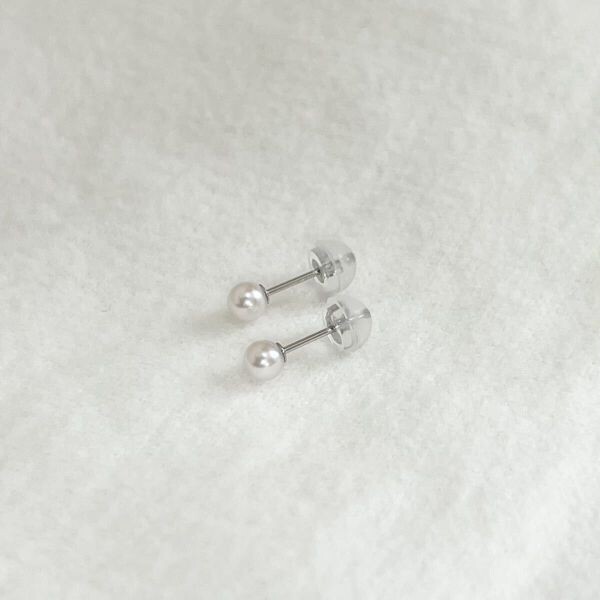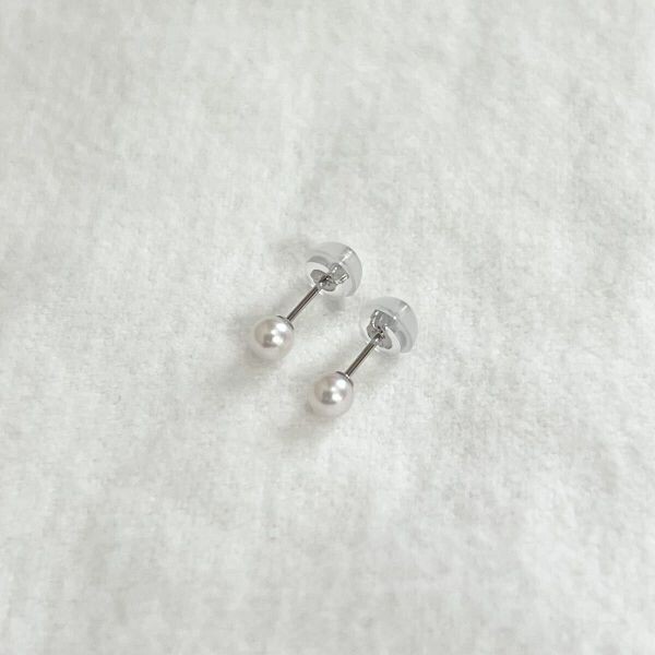 プラチナ 一粒 パールピアス 3.5-4mm ベビーパール pt900 本真珠 和珠 国産 あこや真珠 スタッドピアス