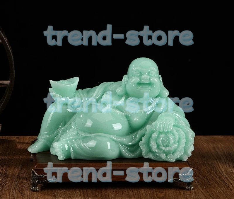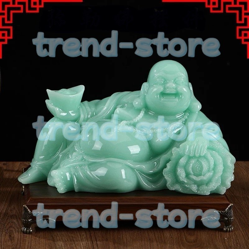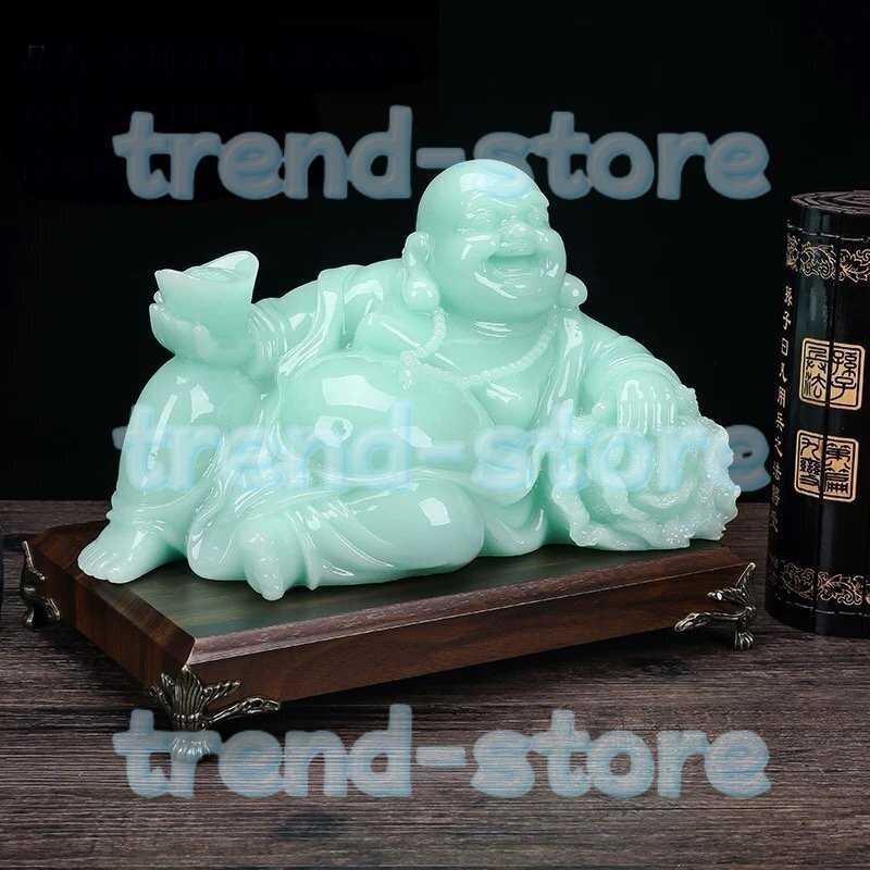 布袋様 風水 七福神の置物 天然石 石材 合成玉石 彫刻仏像 金運 お守り(高さ23cm×巾31cm×奥行19cm)