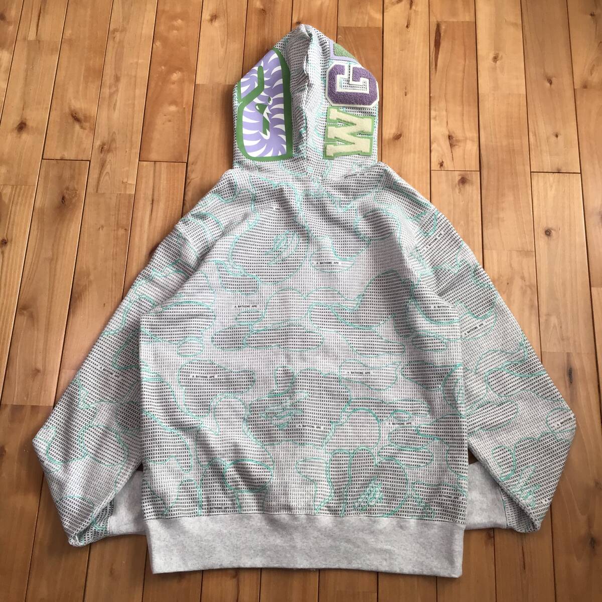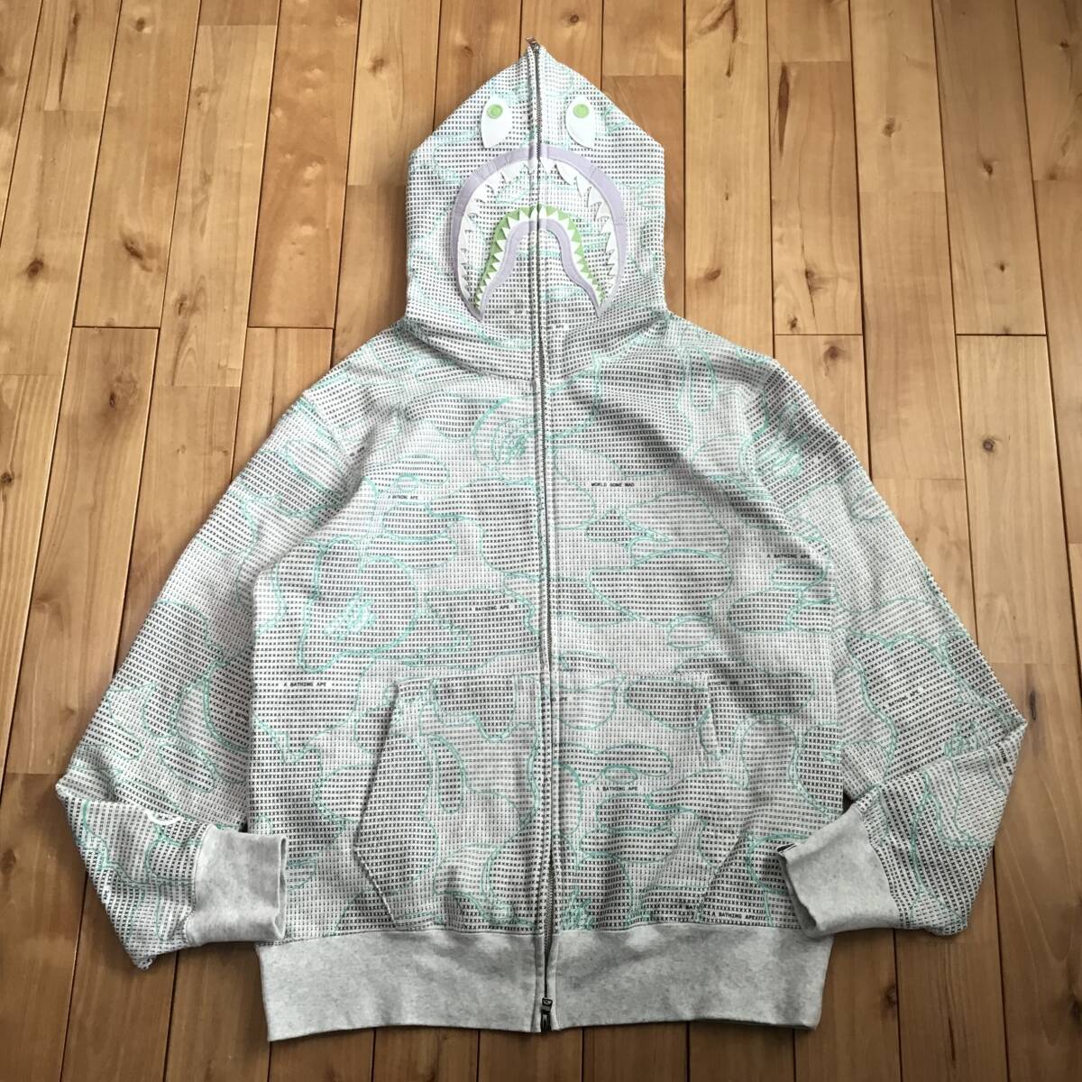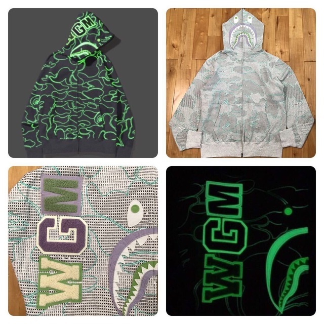 a bathing ape ★蓄光★ TEXT CODE CAMO シャークパーカー グレー XLサイズ です★