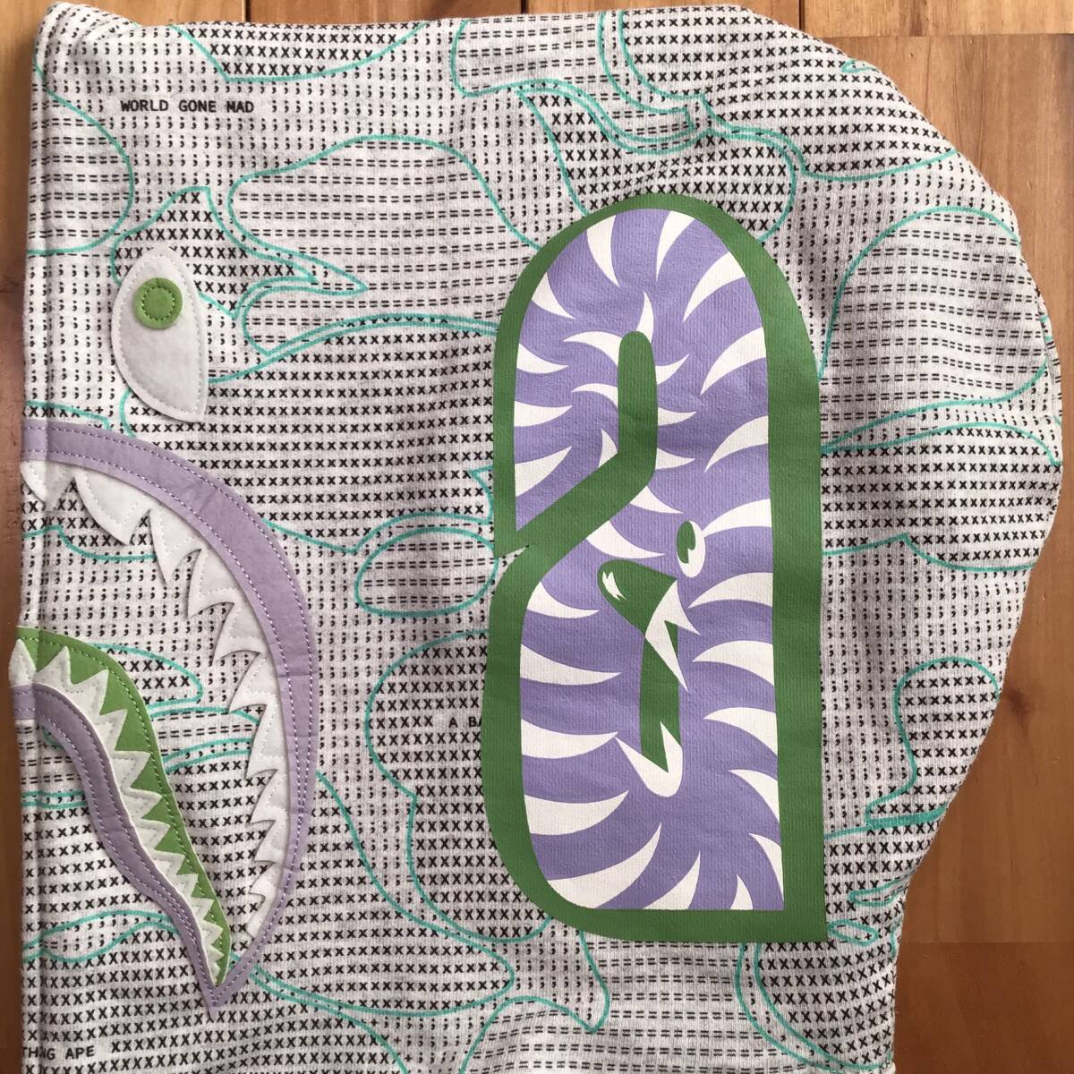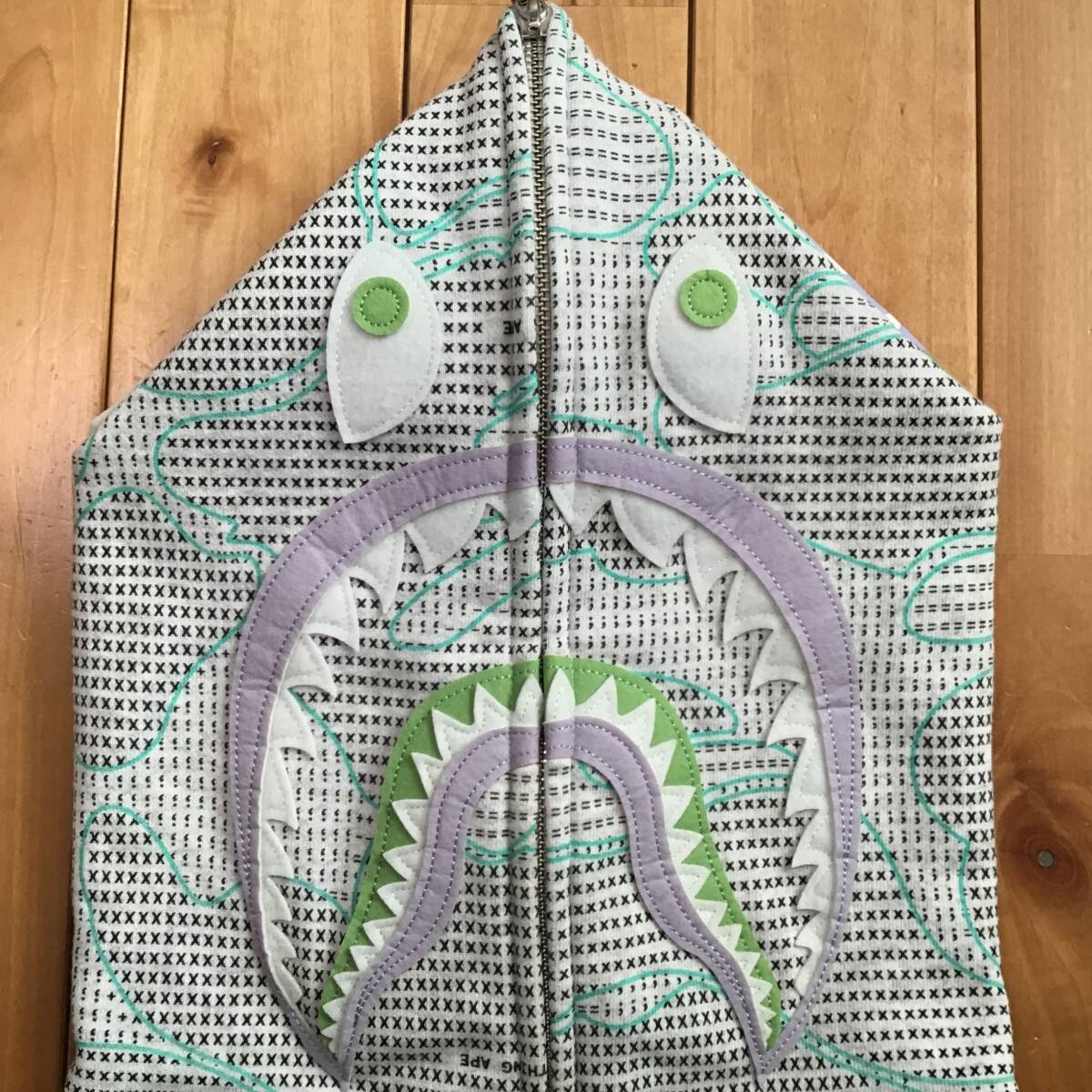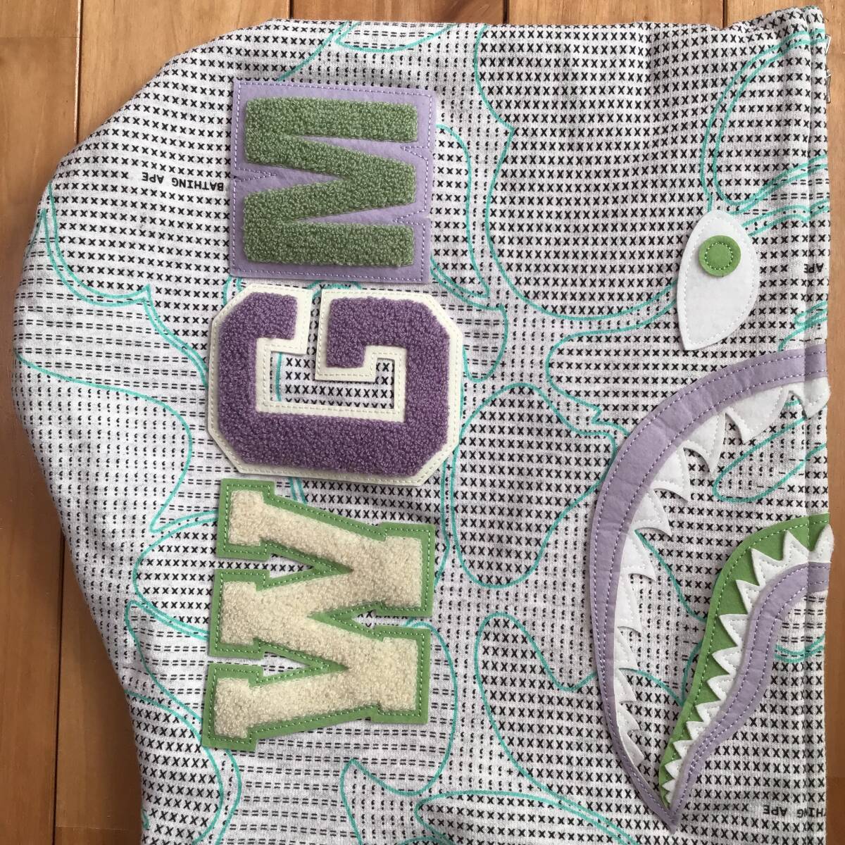 a bathing ape ★蓄光★ TEXT CODE CAMO シャークパーカー グレー XLサイズ です★