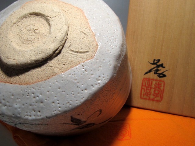 ○商品説明○ 人間国宝加藤孝造作の志野茶碗です。 味わい深い景色の見事な作品です。 ○加藤孝造(かとう こうぞう)○ 昭和後期-平成時代の陶芸家。 昭和26年岐阜県陶磁器試験場にはいり,5代加藤幸兵衛にまなぶ。 37年日本伝統工芸展初入選。43年「鉄釉(てつゆう)花器」で日本伝統工芸展朝日新聞社賞。 45年多治見市に穴窯を築き独立。同年荒川豊蔵に師事。 平成2年美濃陶芸協会会長。21年日本陶磁協会賞金賞,同年瀬戸黒・志野・黄瀬戸の制作・伝承で伝統文化ポーラ賞優秀賞。22年瀬戸黒で人間国宝。 ○サ イ ズ○ 直径13.8cm/高さ9cm(多少の誤差はお許しください) ○状 態○ 無疵である事は確認しておりますが、時代のスレ等ある場合があります。 写真で良くご覧頂き気になる個所が御座いましたらご質問下さい。 ○決済方法○ かんたん決済 ○発送方法○ 佐川急便元払い 全国一律1,000円 北海道1,500円 沖縄2,000円 離島2,500円 複数点ご落札頂きましても、一点分の送料で結構です。 | ||