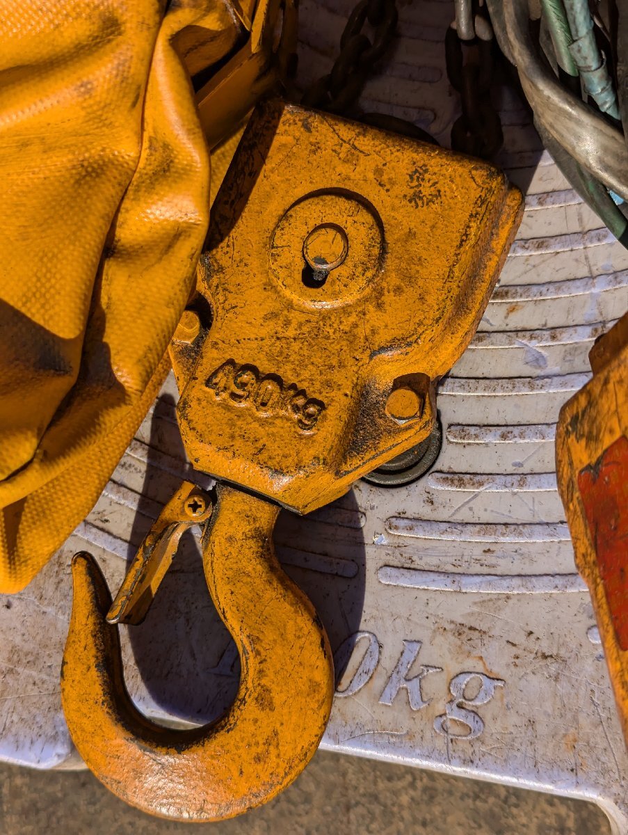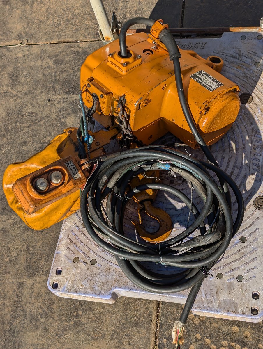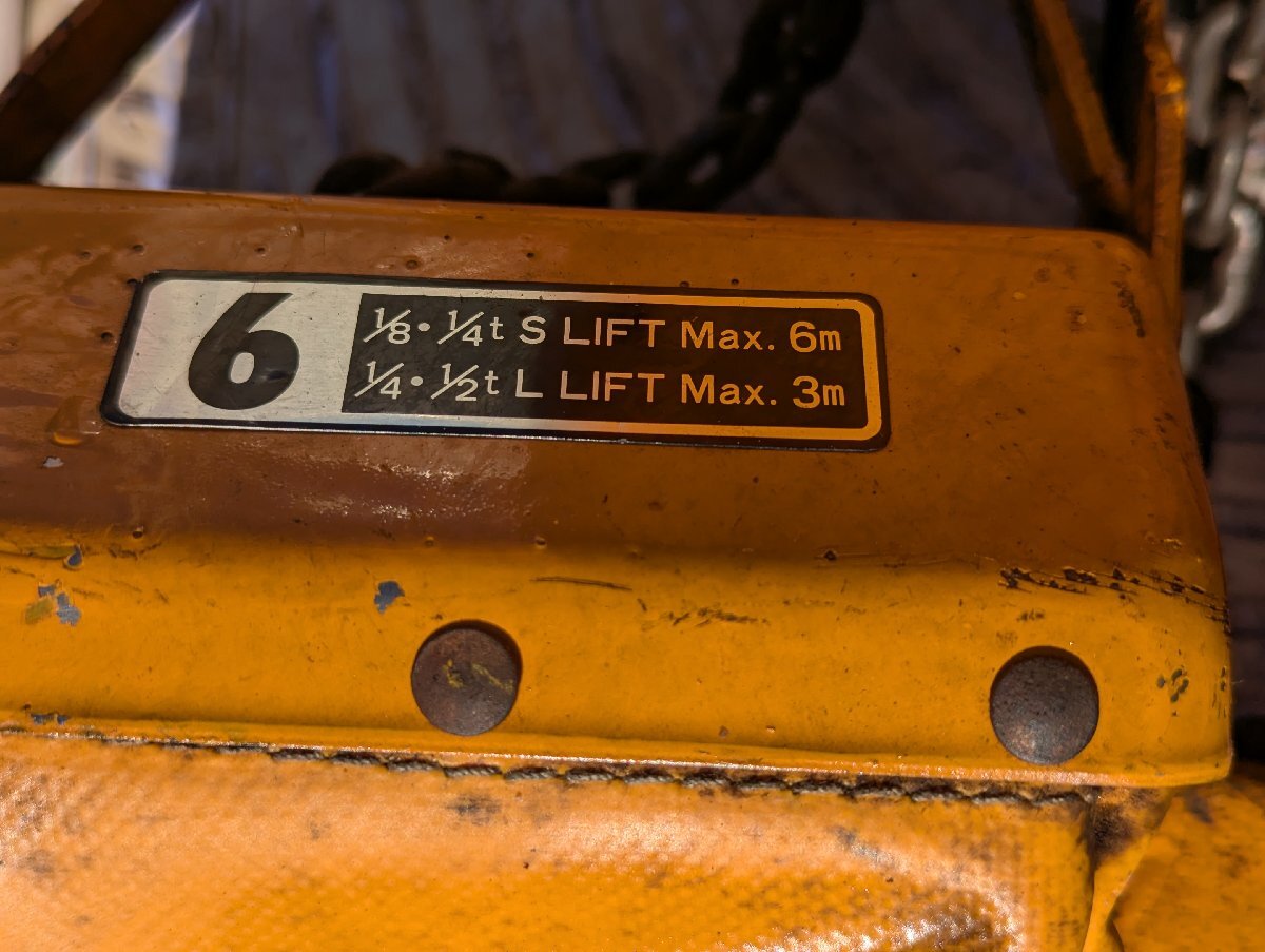 実際に重量物の吊り上げはしておりませんが、チェーンの上下動の確認をいたしました。