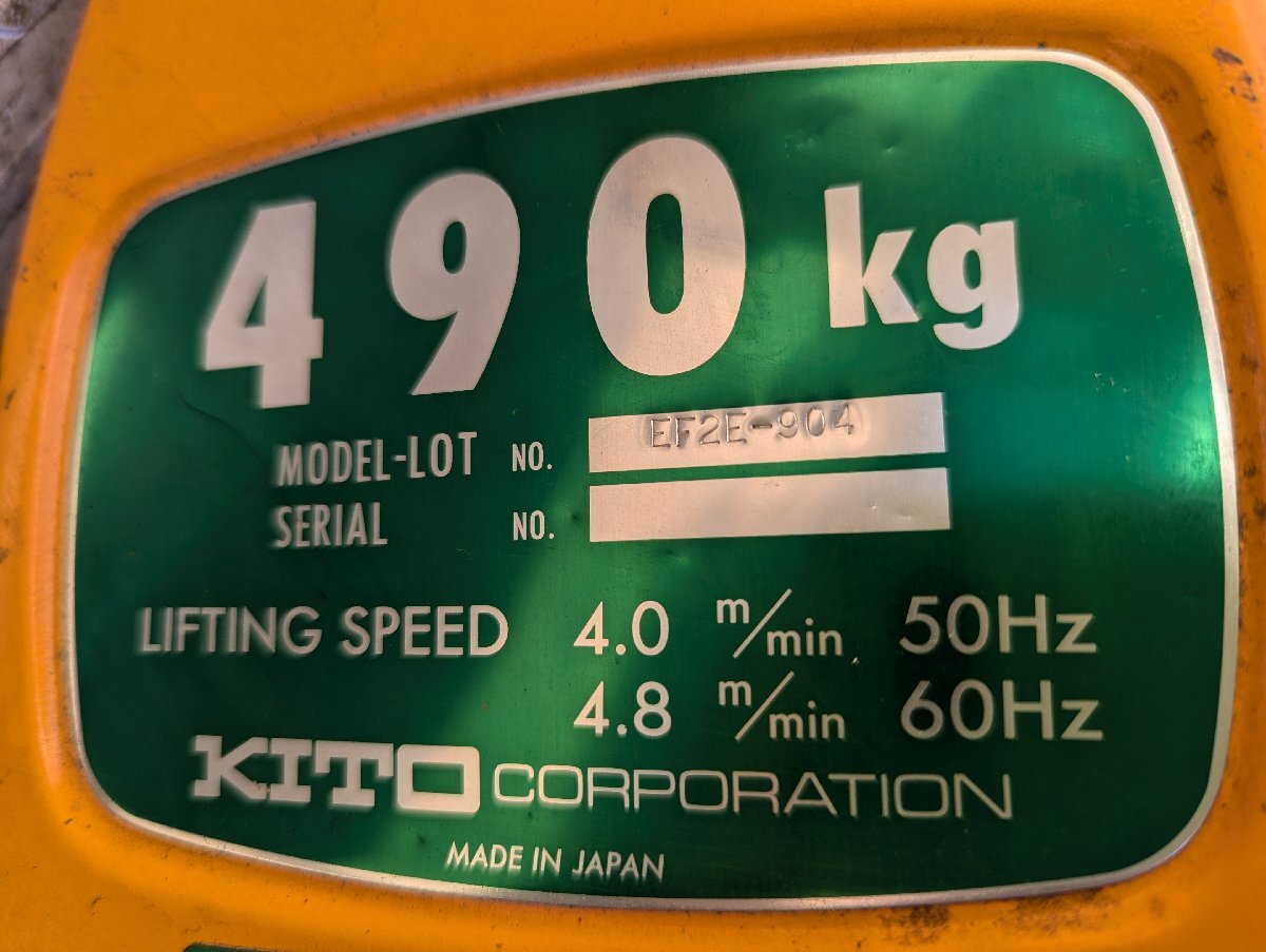 KITO 490kg電動チェーンブロック ファルコン 中古 クレーン、ホイスト
