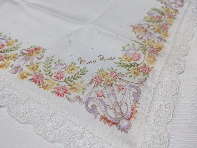 ■ニナリッチ ハンカチ 白 花柄 縁レース NINA RICCI■
