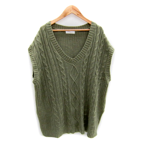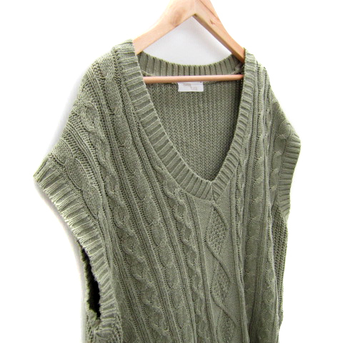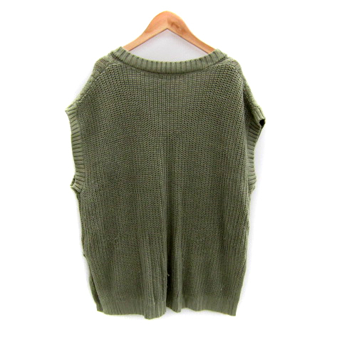 ミーサリーナ Mysa&Liina ニットベスト ミドル丈 Vネック オーバーサイズ スリット M カーキ /SY1 レディース