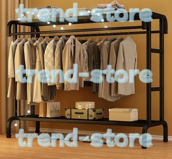 ハンガーラック 頑丈 大容量 衣類収納 洋服ラック 洋服掛け コートハンガー 帽子らっく付き ダブルハンギングロッド付き 150cm