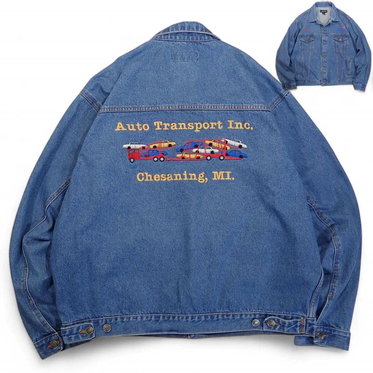 6309/LUNA PIER デニム トラッカージャケット XL●前後刺繍 AUTO TRANSPORT Chesaning MI ジージャン Gジャン●洗濯プレス済●ルナピア古着