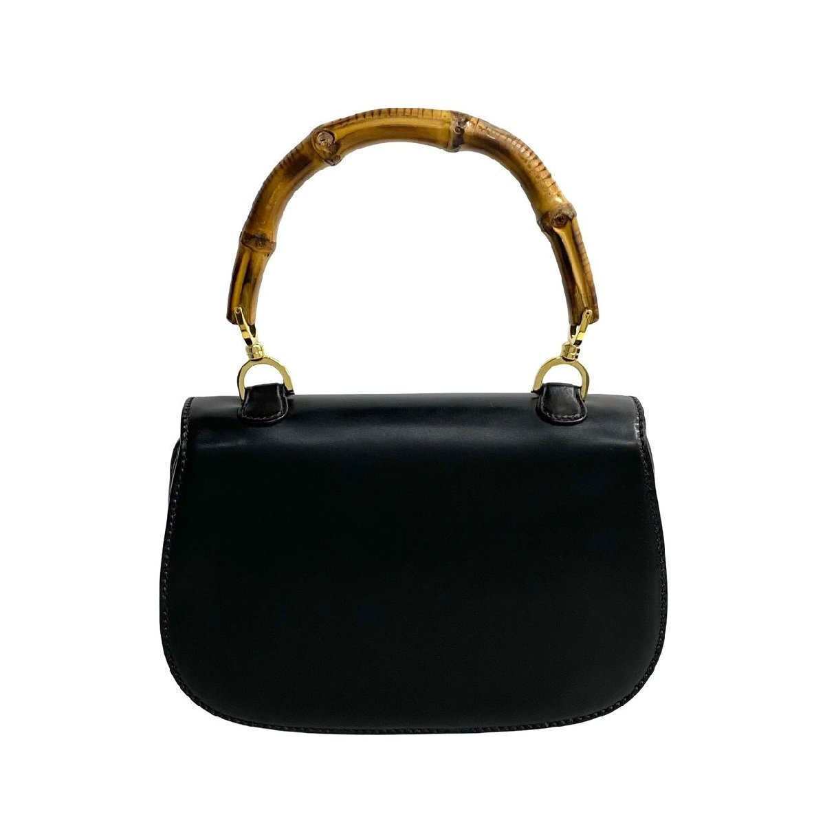 極 美品 GUCCI グッチ オールドグッチ ヴィンテージ バンブー ターンロック レザー ハンドバッグ ミニ トートバッグ ブラック 30478