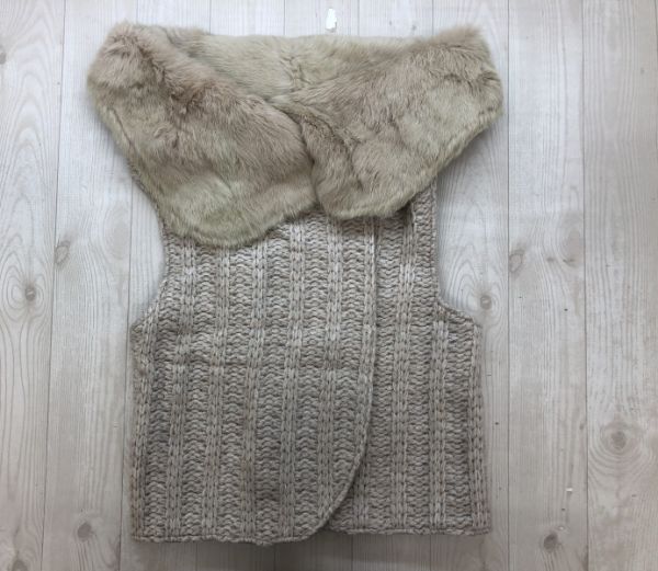 CATHERINE PARRA キャサリンパーラー H.P.FRANCE アッシュペーフランス取扱 襟フェイクファー 切替 ニットベスト レディース ベージュ です。