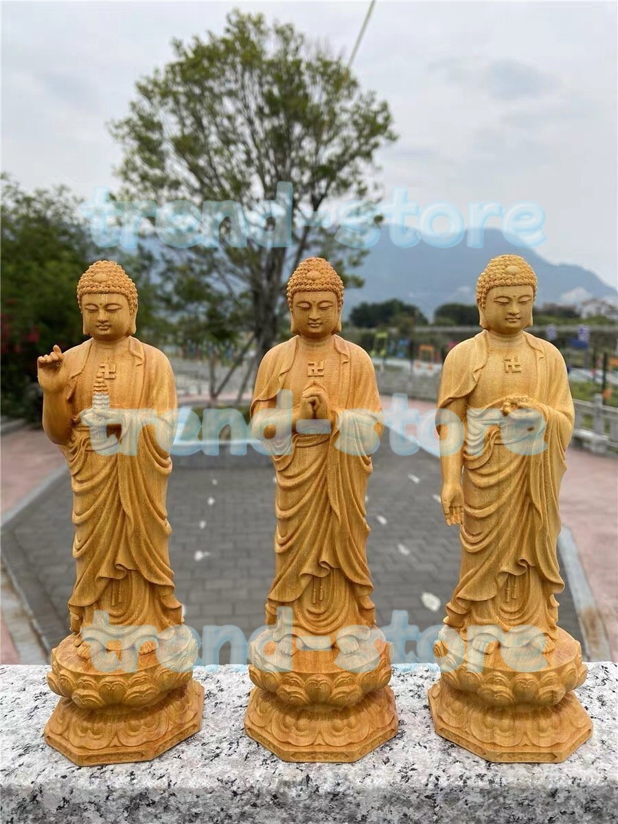 木彫り 阿弥陀如来像 薬師如来 釈迦如来三尊立像 ルドラークシャ仏像 置物