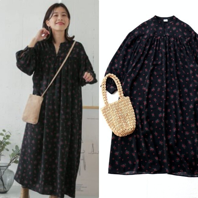 軽い素材感なので、中にタートルを重ねたり、上からカーディガンを羽織ったりと重ね着も可能なワンピースです。
