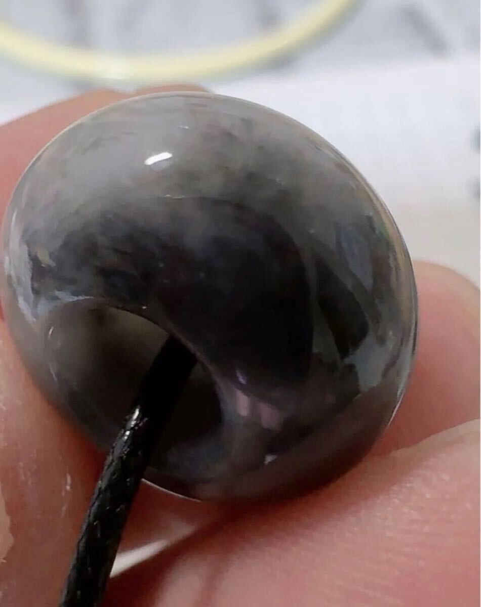 R2-0172 天然石 天然翡翠ペンダント直径17.3mm /10.5mm/5.4mm 黒翡翠 上質上品 白黒 ネックレス 紐約42cm パワーストーン 縁起物