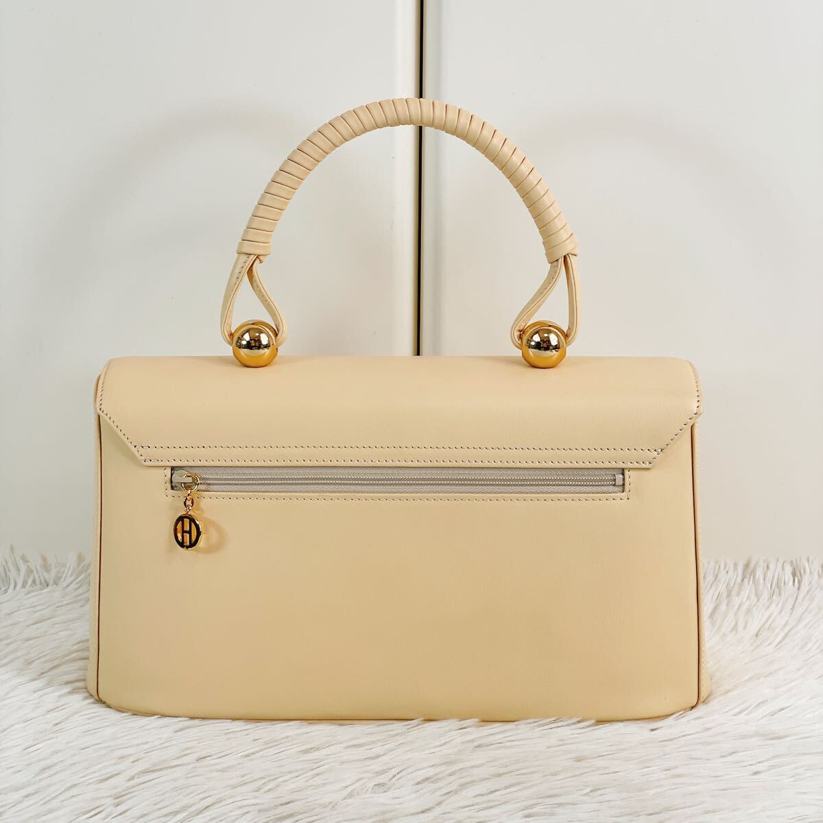 濱野皮革工藝 HAMANO フォーマルバッグ ロイヤルスタンド アイボリー × ゴールド金具 牛革