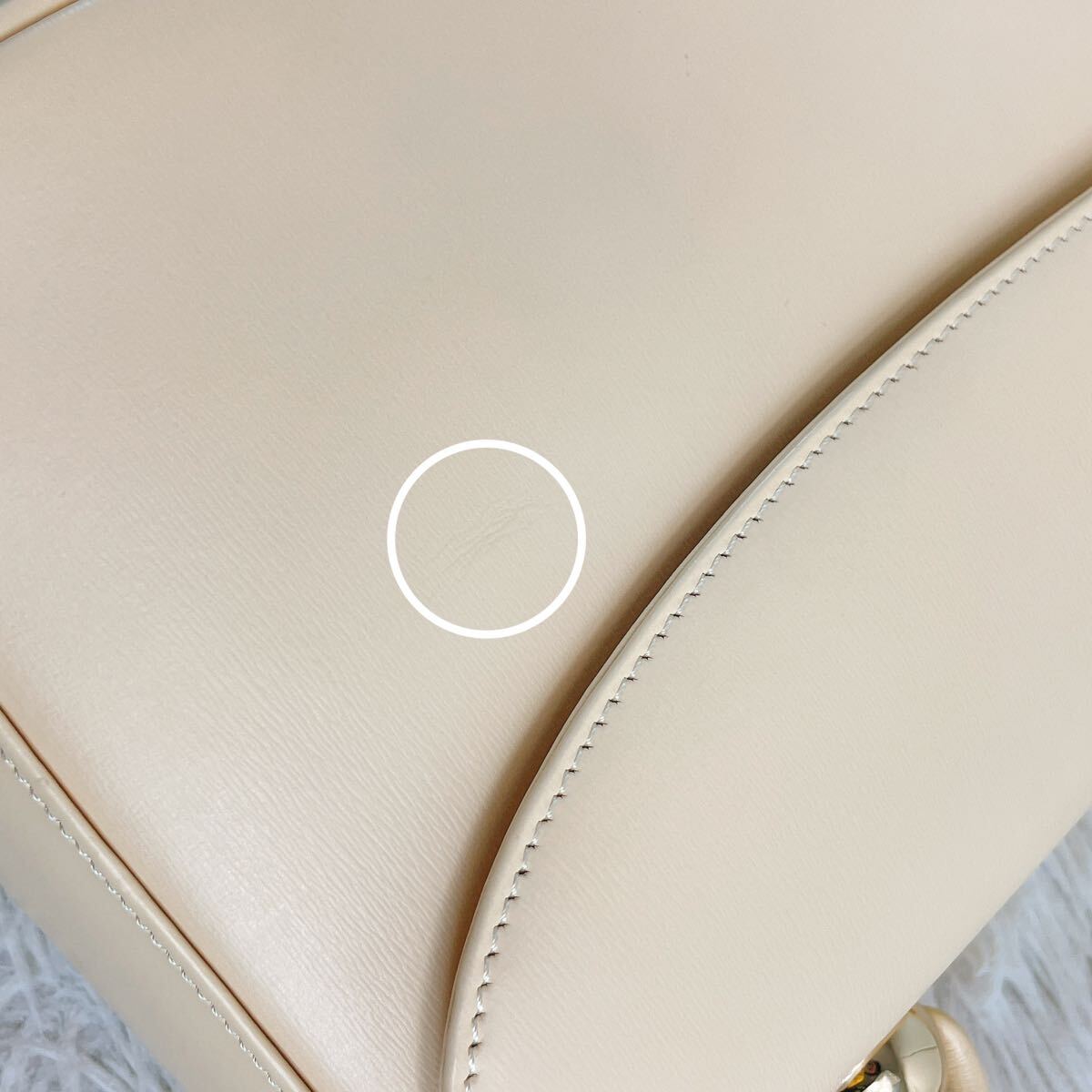 珠金具、傷は無く綺麗です(反射し鏡のようにスマホ等が映り込んでしまう為、そこだけにぼかしております。)