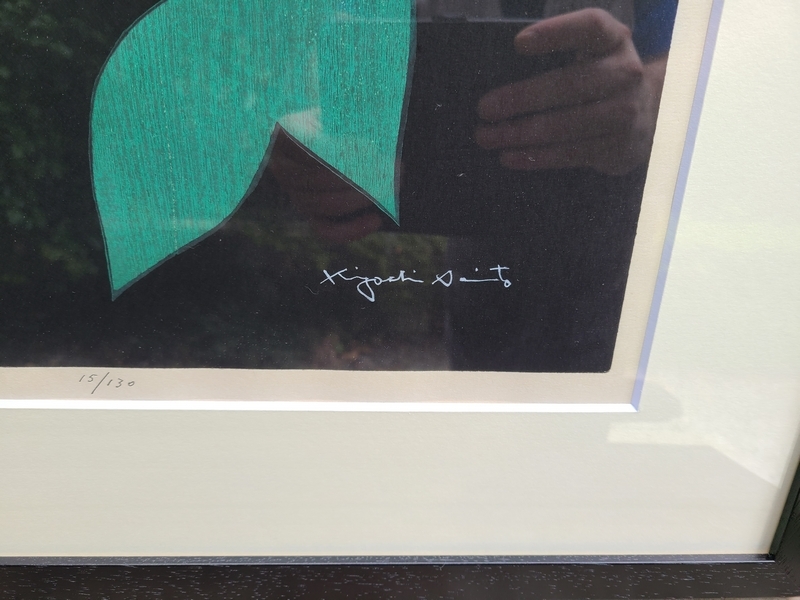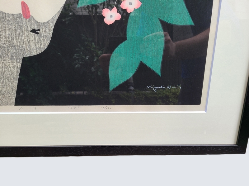 【真作】斎藤清[ 斉藤清 ] ■ 六月 [ 紫陽花 顔 ] 1984年・15/130 ■ ■額 [横約74× 縦約59.4cm] 額入 布袋 紙箱入り ■ 額サイズ : 約74× 縦約59.4cm× 厚み約 3㎝ 紙箱サイズ : 約78× 縦約62.5cm× 厚み約 5㎝ 画像をご覧いただきお目に留めて頂いた方へお譲り致します。 本日のお買得品のお仲間に是非いかがでしょうか。 ※ 画像以外の付属品はありません。 ■整理品 中古品相応 経年相応 入手状態でお譲り致します。 全体的に良い状態で保管されていたお品物ですが、 新品、新品同様ではありません。経年劣化、シミ・額のスレ傷、小アタリ・塗剥・汚れ等はご承知おき願います。 ■斎藤清 Saito Kiyoshi■ 明治40年-平成9年 福島県出身 日本の画家、版画家。24歳で上京し、宣伝ポスターの仕事をしながら絵を独学。29歳の時、安井曾太郎の木版画に触発され、 独学で木版画制作に着手し、同年の日本版画協会展に、木版画「子供座像」、「少女」を初出品し、初入選を果たしました。 以降は版画制作へ傾倒 版画は、抽象絵画のようであり、日本の伝統美と西洋のモダニズムが融合した独自の造形表現は 国内外で高く評価され、世界的版画家として活躍 画像からご判断頂ける方、しばらくの間眠っていた古いお品物とご理解頂ける方の みご検討願います。ご入用の方へ! ■ご案内 お品物は、経年中古品現状渡しでございます。新品ではありません。 ※モニターで見える色やイメージが実際のものと違う場合があります。 又、タイトル・コメントはあくまでも主観です。見落としなどがあるかもしれませんのでご参考程度とお考え願います。 お品物に関する情報は、箱やお品物上にあります印刷・記載等から 拾っております。未使用と思われるお品物でありましても、中古で入手しているお品でございます。 尚、見解には個人差がございますので神経質な方はご入札を御控え願います。 検索ワードとして、タイトルには出品商品と関連のない単語も含まれる場合があります。 ご注意:評価が著しく悪い方、新規IDの方の入札・ご落札を削除する場合がございます。 ※ 採寸誤差、誤認、誤記等につきましてはご容赦願います。 紙箱 共箱等納品の場合は基本的に古さがございます。劣化、書き込み等がある場合もございます。 完璧ではありません。 ■万が一真作ではない場合、タイトル・商品説明欄に「保証」と記載された作品を含み、 個人的見解を除き公的に 認められた所定鑑定人及び機関の鑑定により贋作と判明した場合は返品をお受け致します。落札代金、送料とも全額ご返金いたします。 その際の返金は落札金額と送料のみで鑑定料及びそれに伴う経費は負担出来ません。 ■お取引について 8934 2日以上ご連絡を頂けない場合はキャンセル致します。 |