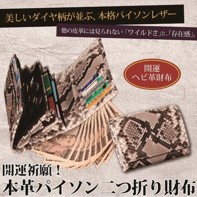 開運祈願 本革パイソン 2つ折り財布 メンズ レディース B-00052