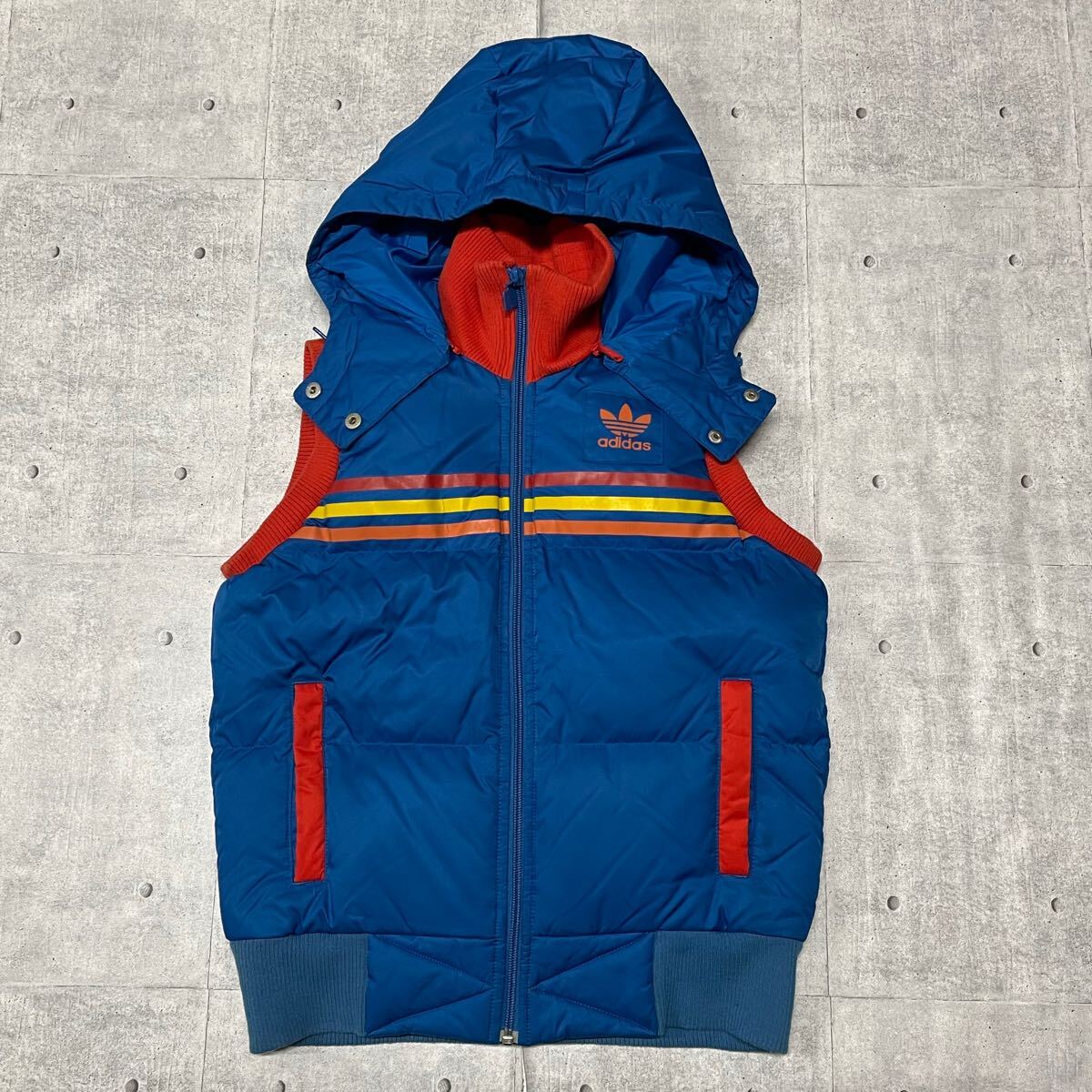 00s Y2K adidas 万国旗タグ ダウンベスト 2WAY フード取外し  00年代 アディダス フーディーダウンベストパーカー トレフォイル YL1021