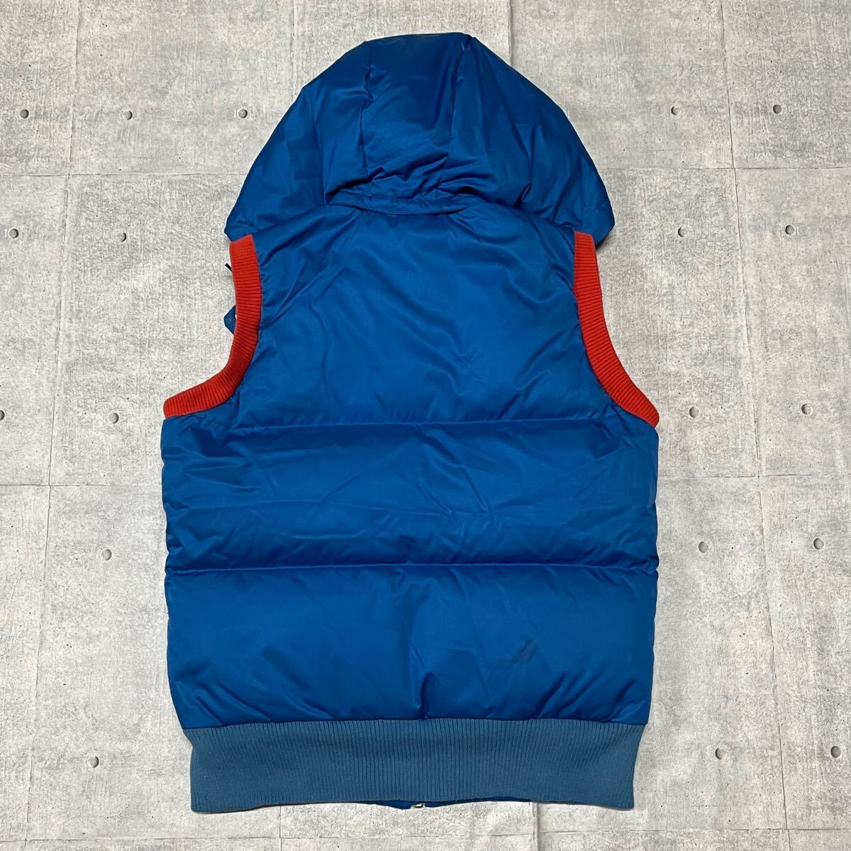 00s Y2K adidas 万国旗タグ ダウンベスト 2WAY フード取外し  00年代 アディダス フーディーダウンベストパーカー トレフォイル YL1021 リブ スリーストライプ 3本ライン アディダスオリジナルス オールドアディダス スポーツブランド