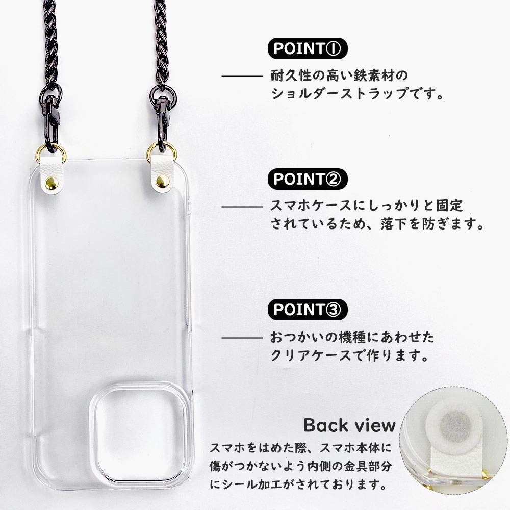 AQUOS sense9 SH-53E SHG14 SH-M29(ブラックB)ストラップホルダー クリアケース ショルダー チェーン 肩掛け 首かけ 斜めがけ 透明